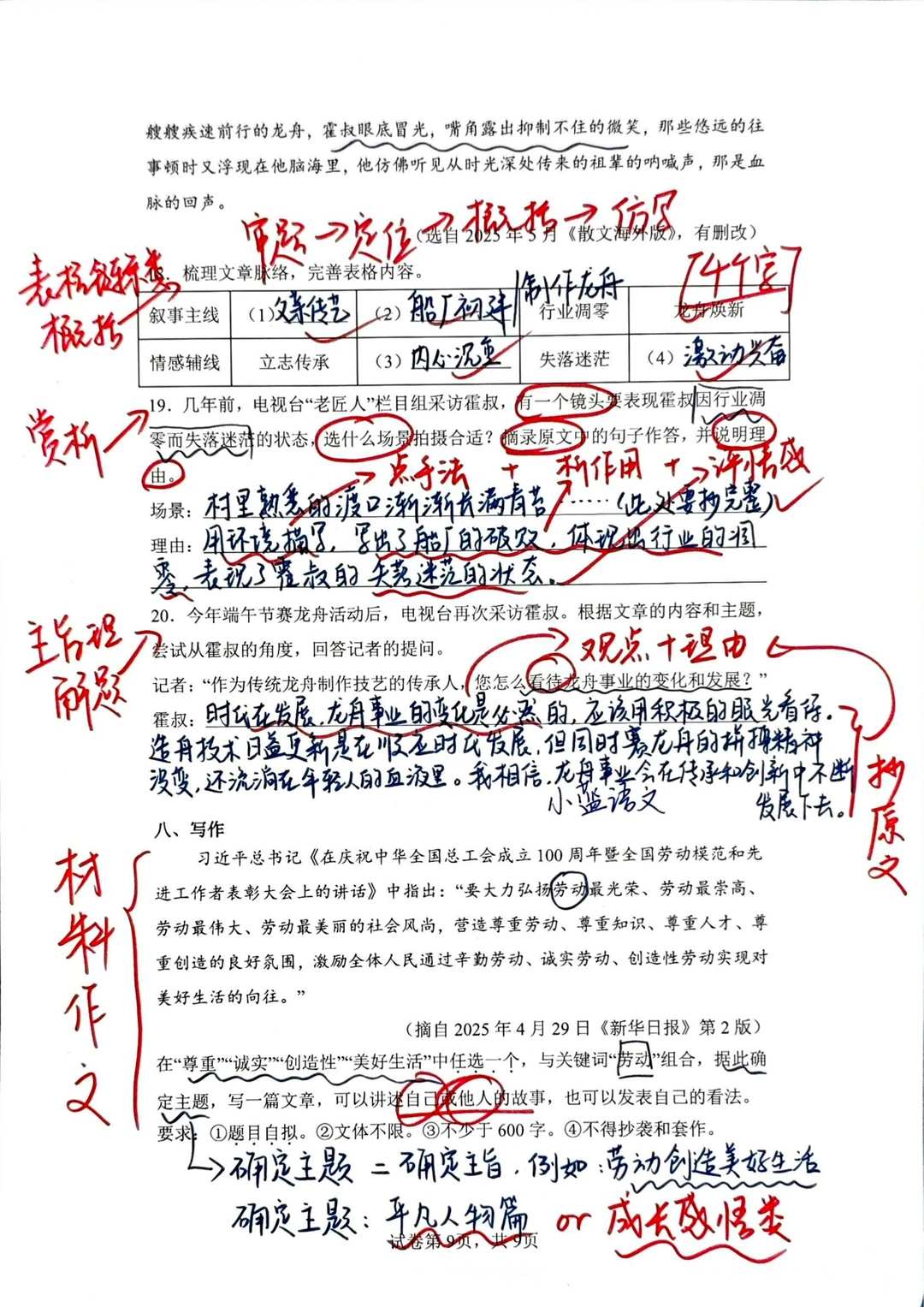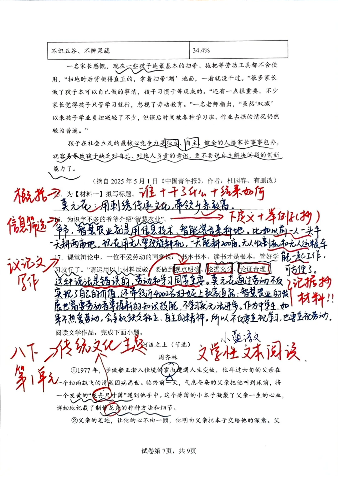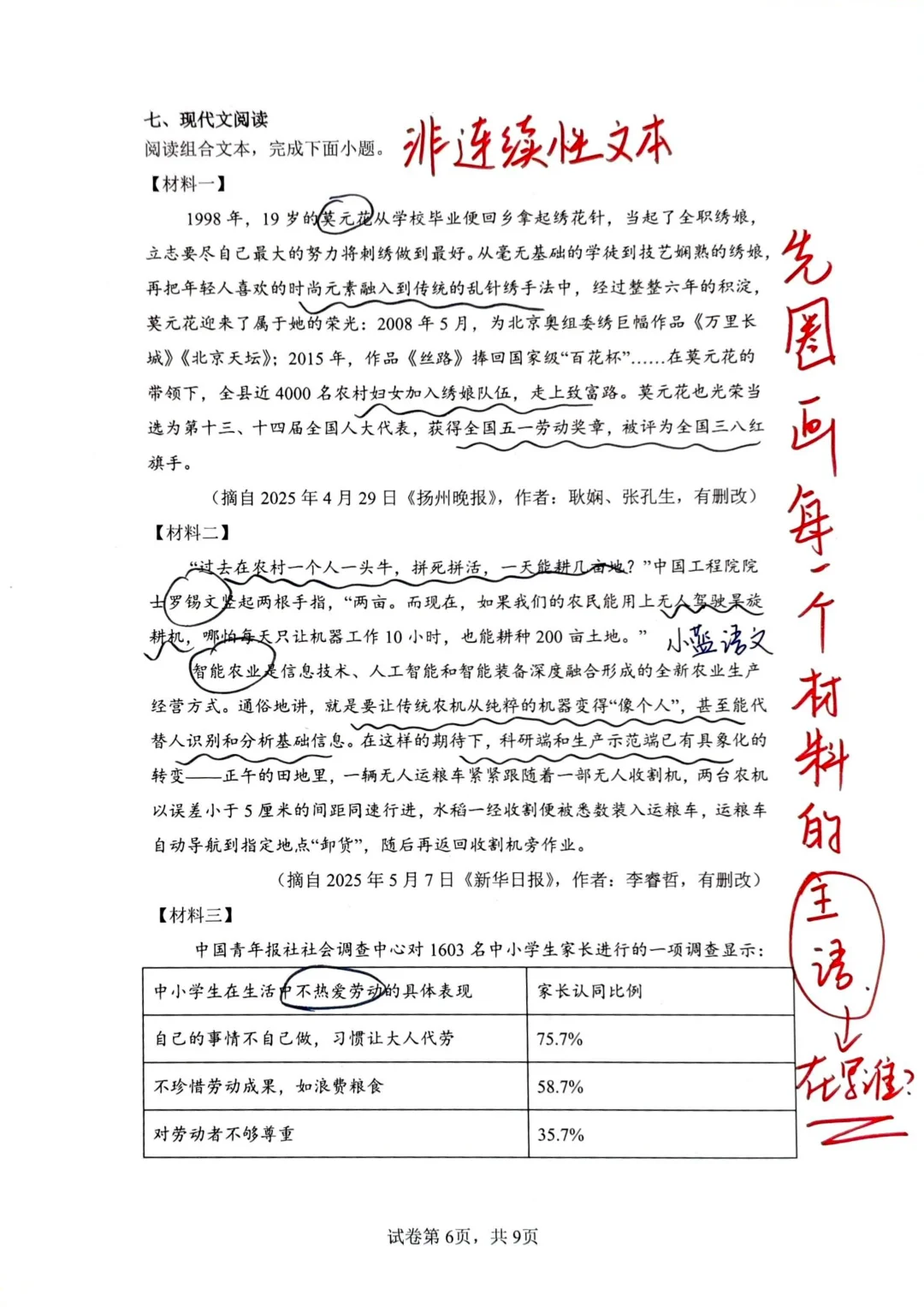 [火R]2025年江苏省扬州市的中考语文题难度中等,阅读部分难度不大,但书写量大,问答题中考查答题的表达逻辑。