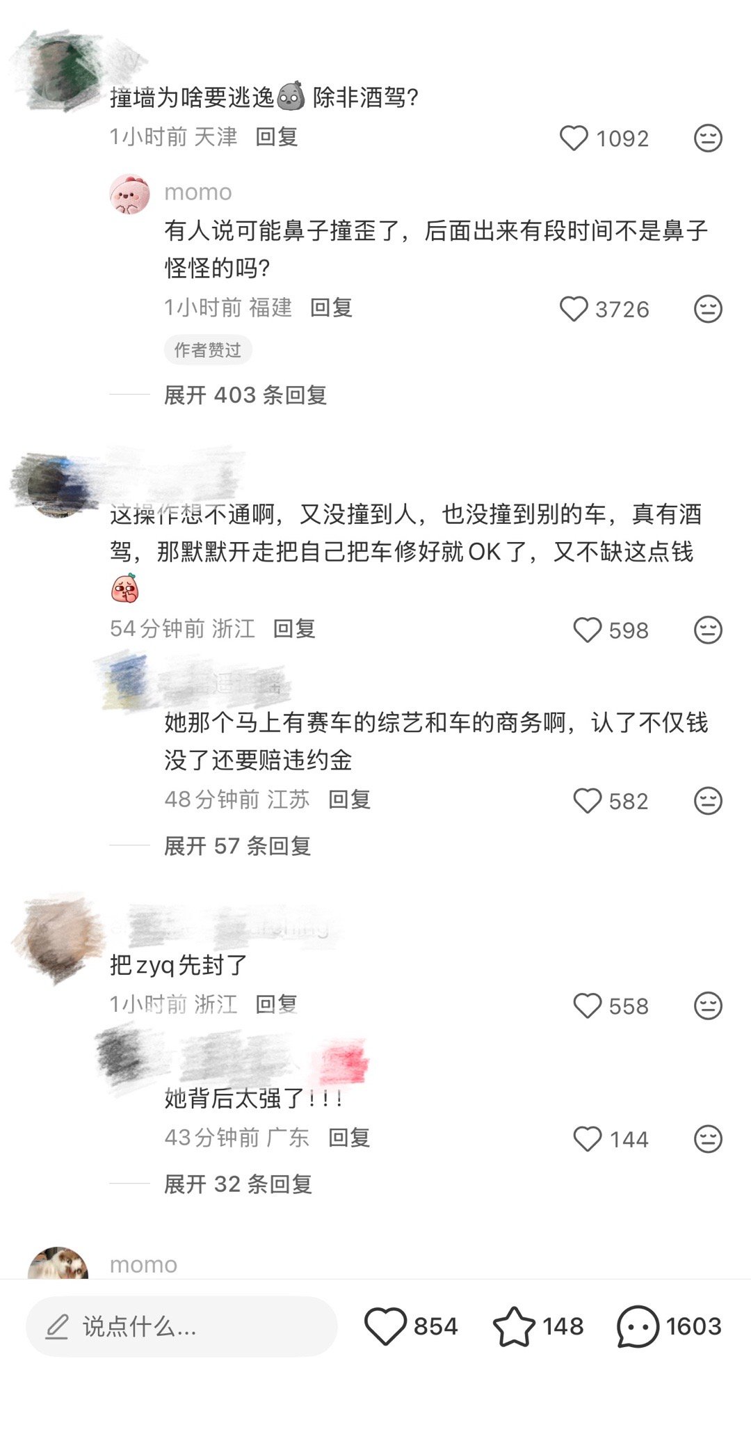 网友分析金晨肇事逃逸的理由1.鼻子撞歪了,急着去修复2.马上有赛车的综艺和车的商务,认了要赔违约金