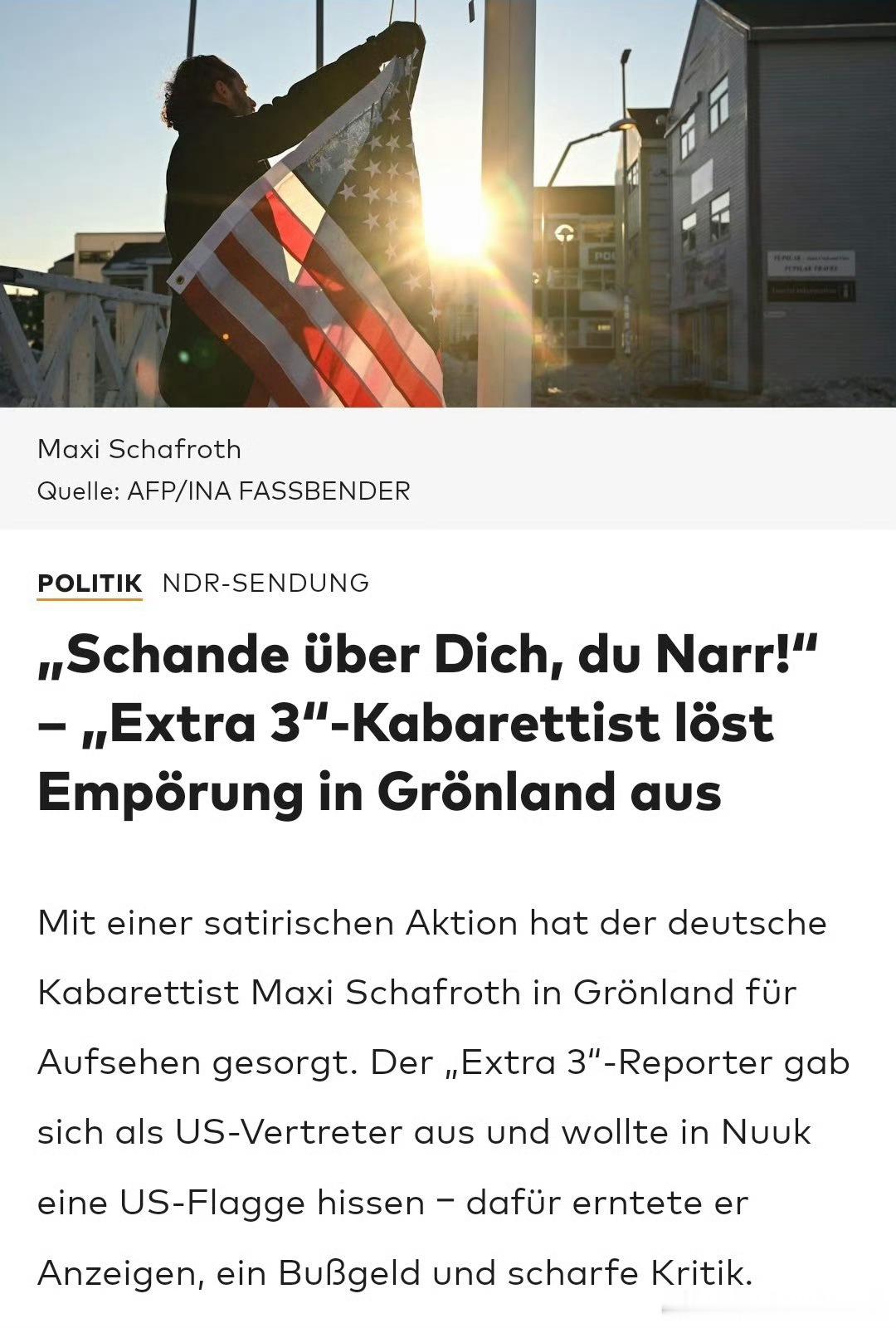 这个世界可真是越来越癫了,一位巨魔大叔跑到格陵兰努克文化中心在众目睽睽之下愣是要硬着头皮去升美国国旗,结果被当地警方直接拘留。欧洲网友听闻此事纷纷怒喷:美国人实在太霸道,竟敢跑到外面强行插旗占地!MAGA群体则为巨魔大叔齐齐点赞:好样的,咱们早该这么干!现在调查结果出来了,这位传奇旗手竟然是德国喜剧演员,此人专程跑到格陵兰单纯就是要搞反串。这下美国人和欧洲人全都沉默了……离谱事件新星闪光计划魔金石科技