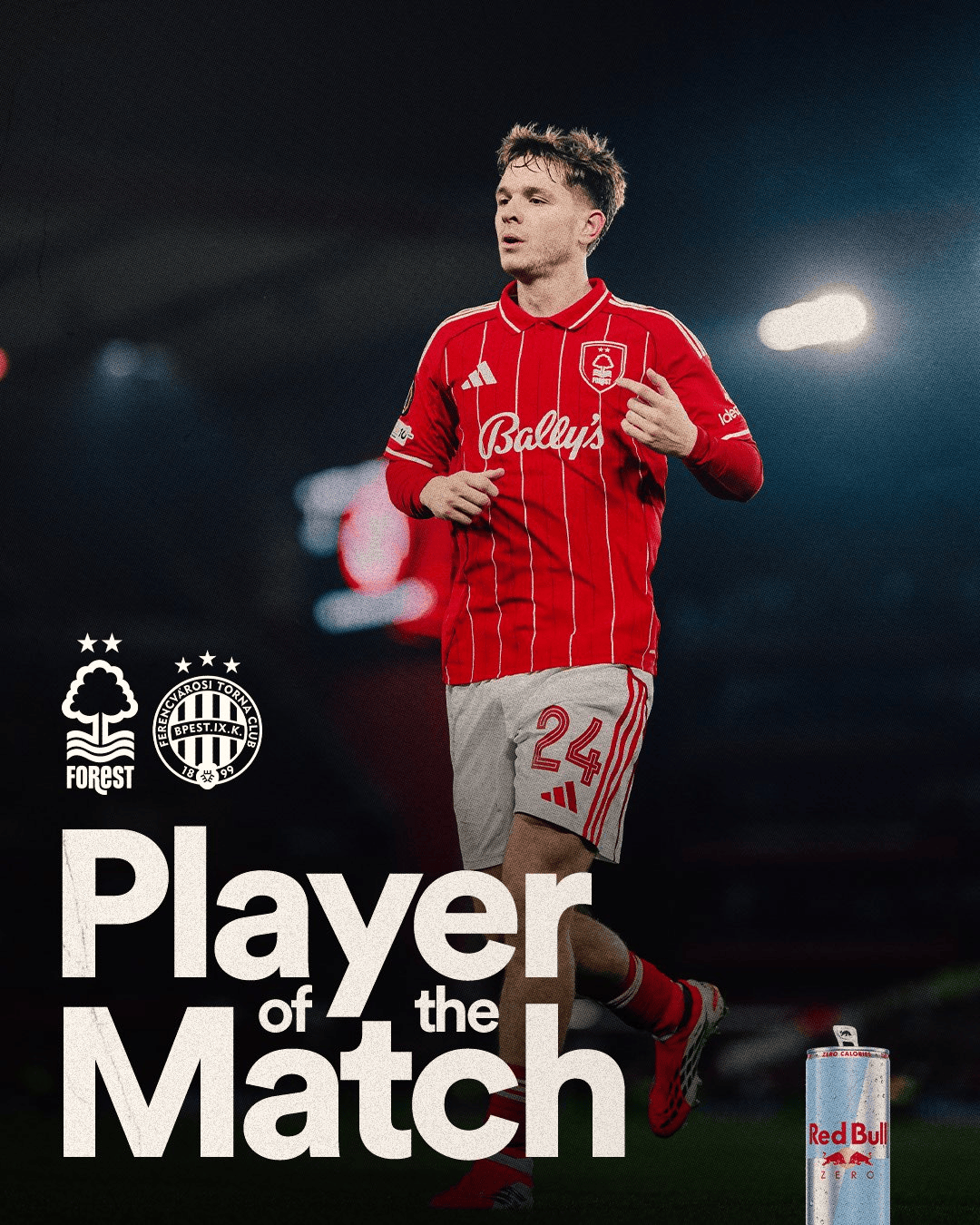 赛后森林官方的球迷投票中,他也被森林球迷选为本场的队内最佳球员。