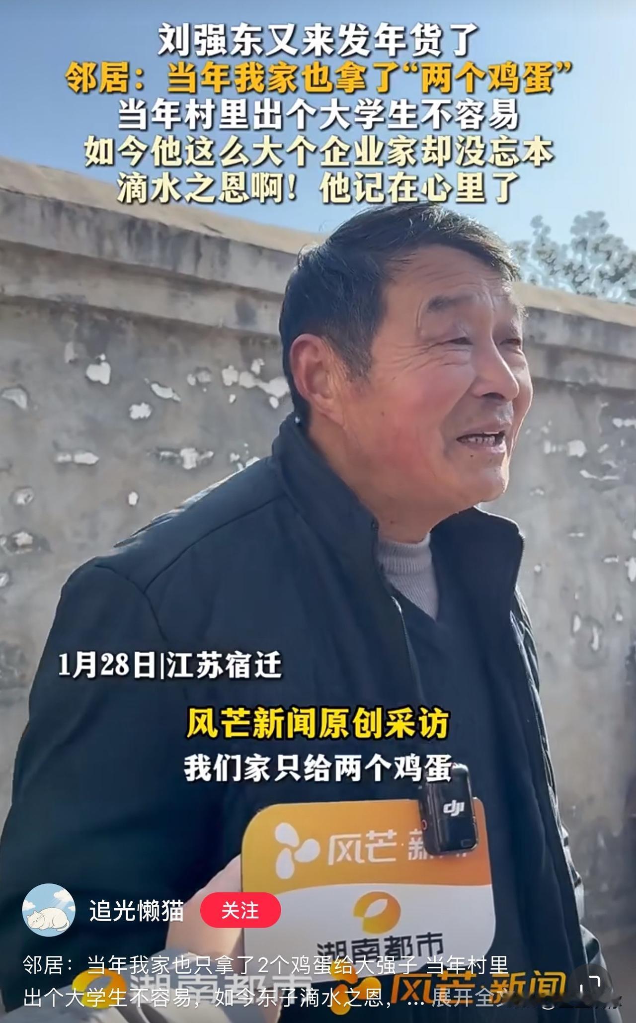 刘强东作为农村孩子,在那个年代考上中国人民大学是非常有分量的,马云也只是考个杭州师范,马化腾也只是考个深圳大学。 刘强东的老乡情真的是国内他这个级别的企业家里最浓的最实在的了。他老家这个村民风好,没有妒忌刘家出了大学生,反而是想办法给他凑鸡蛋。有地方红眼病见不得人家好的。