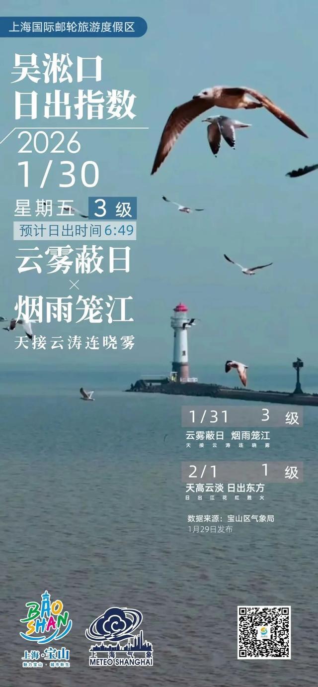 [吴淞口日出指数]1月30日3级云雾蔽日×烟雨笼江