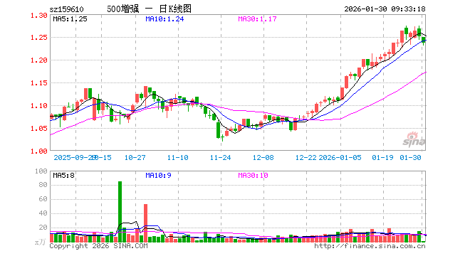 500ETF增强(159610)业绩比较基准为中证500指数收益率,管理人为景顺长城基金管理有限公司,基金经理为张晓南、郭琳,成立(2021-12-13)以来回报为24.60%,近一个月回报为12.38%。