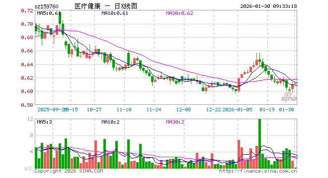 1月30日,医疗健康ETF泰康(159760)开盘涨0.16%,报0.611元。医疗健康ETF泰康(159760)重仓股方面,药明康德开盘跌0.17%,恒瑞医药跌0.19%,迈瑞医疗跌0.03%,联影医疗涨0.23%,片仔癀跌1.68%,爱尔眼科跌0.79%,常山药业跌0.02%,新和成跌1.00%,科伦药业跌0.03%,复星医药涨0.00%。