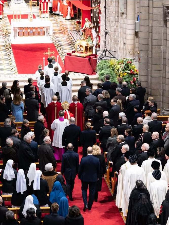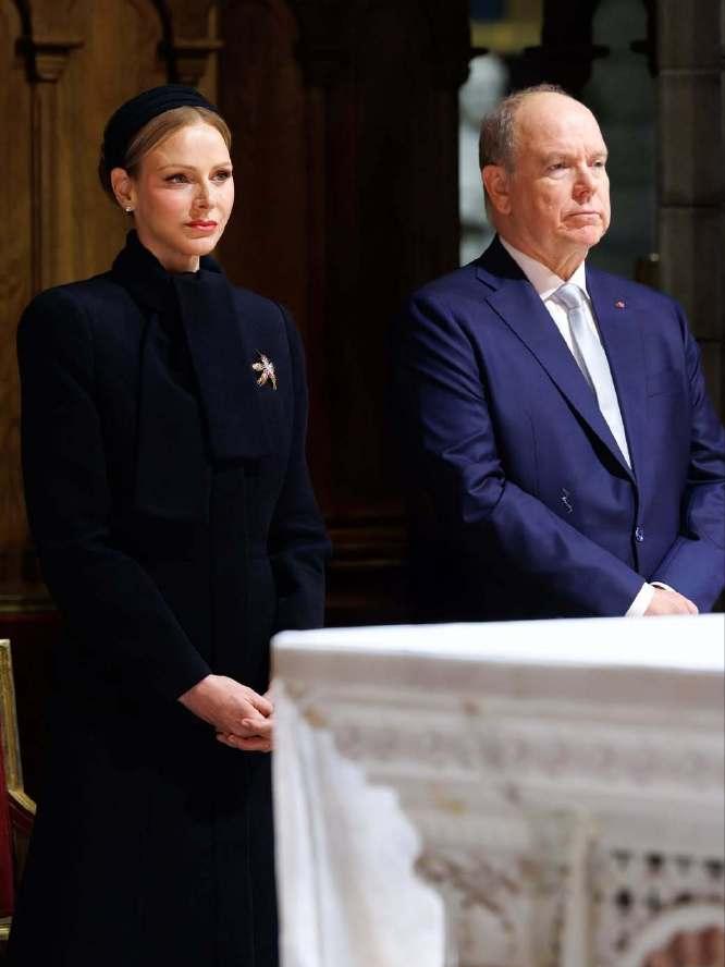 摩纳哥阿尔贝国王携夏琳参加弥撒礼[机智] 和前几天清汤挂面的朴素亲民形象完全不同