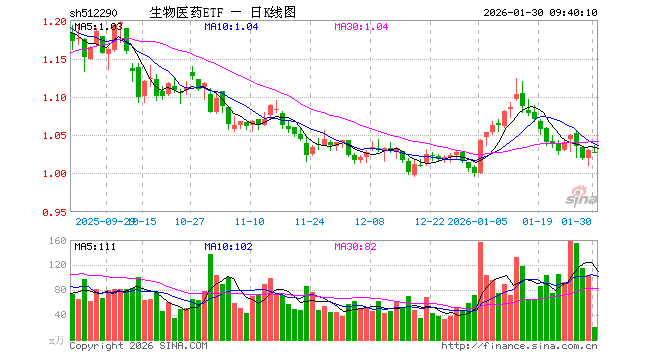 1月30日,生物医药ETF(512290)开盘跌0.19%,报1.028元。生物医药ETF(512290)重仓股方面,药明康德开盘跌0.17%,恒瑞医药跌0.19%,迈瑞医疗跌0.03%,上海莱士跌0.31%,百济神州涨0.70%,长春高新跌0.10%,艾力斯涨0.80%,甘李药业跌1.11%,智飞生物跌0.89%,新产业跌0.20%。