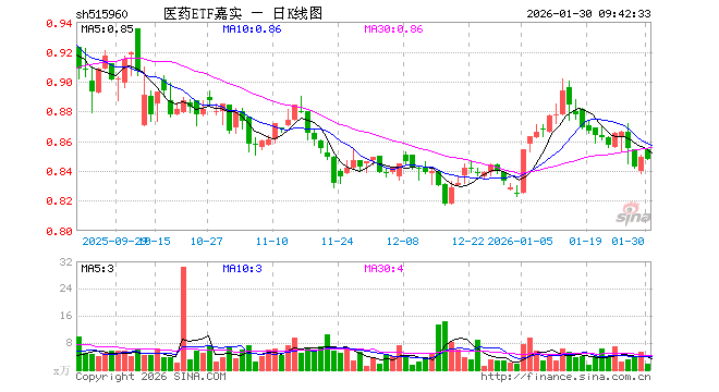 1月30日,医药ETF嘉实(515960)开盘涨0.59%,报0.854元。医药ETF嘉实(515960)重仓股方面,药明康德开盘跌0.17%,恒瑞医药跌0.19%,迈瑞医疗跌0.03%,爱尔眼科跌0.79%,云南白药跌0.36%,新和成跌1.00%,华东医药跌0.65%,复星医药涨0.00%,百济神州涨0.70%,康龙化成跌0.69%。