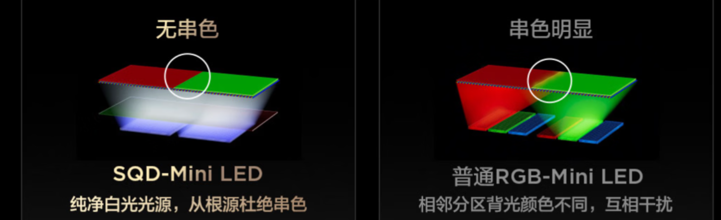而RGB-Mini LED虽宣传为创新技术,但在三原色的路线让其天生存在串色短板,而SQD-Mini LED却凭借对画质本质的深刻理解,成为兼顾观感与健康的优选方案。