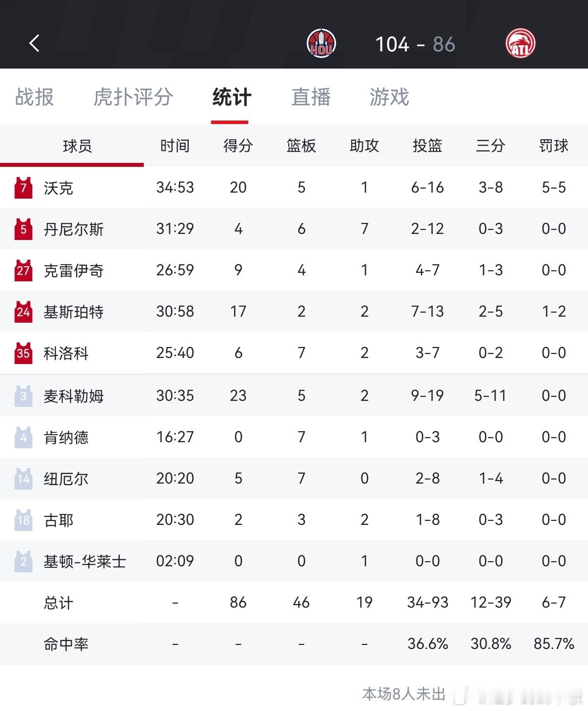 杜兰特31分,火箭背靠背客场轻取老鹰火箭目前领先湖人1个胜场火箭vs老鹰