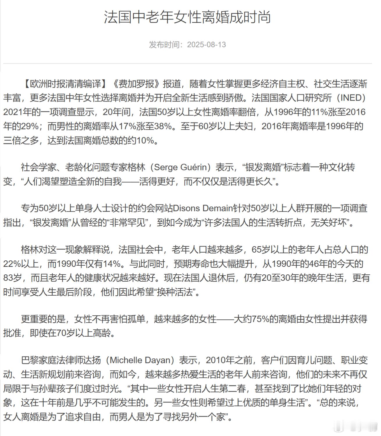 BBC:法国国民议会通过了一项法案,明确规定“共同生活”并不构成“性关系义务”。拟议的法律还规定,在过错离婚案件中,不能以缺乏性关系作为理由,支持者希望这项法律能够有助于遏制婚内强奸。从“性同意权”到“婚内强奸”,这些都是西方白左和女权玩剩下的东西,我们还把这当成所谓“文明社会”“法治先进”的表现而奉为圭臬。法国所谓的浪漫就是“结婚率”全球垫底,“出轨率”和“离婚率”高的代名词,一个私人做亲子鉴定违法、孩子的“亲生率”不到50%甚至把离婚当成“时尚”的国家,这就是有些人想让中国效仿的“文明先进”吗?!