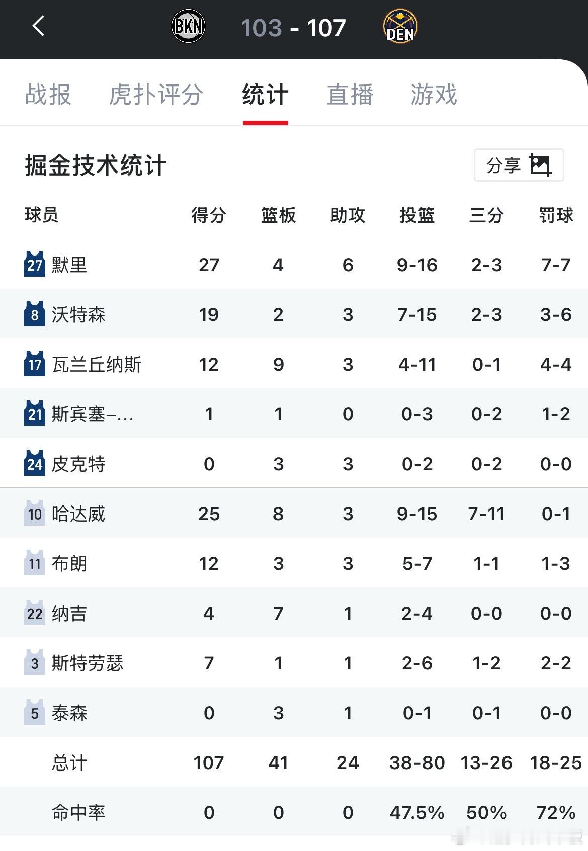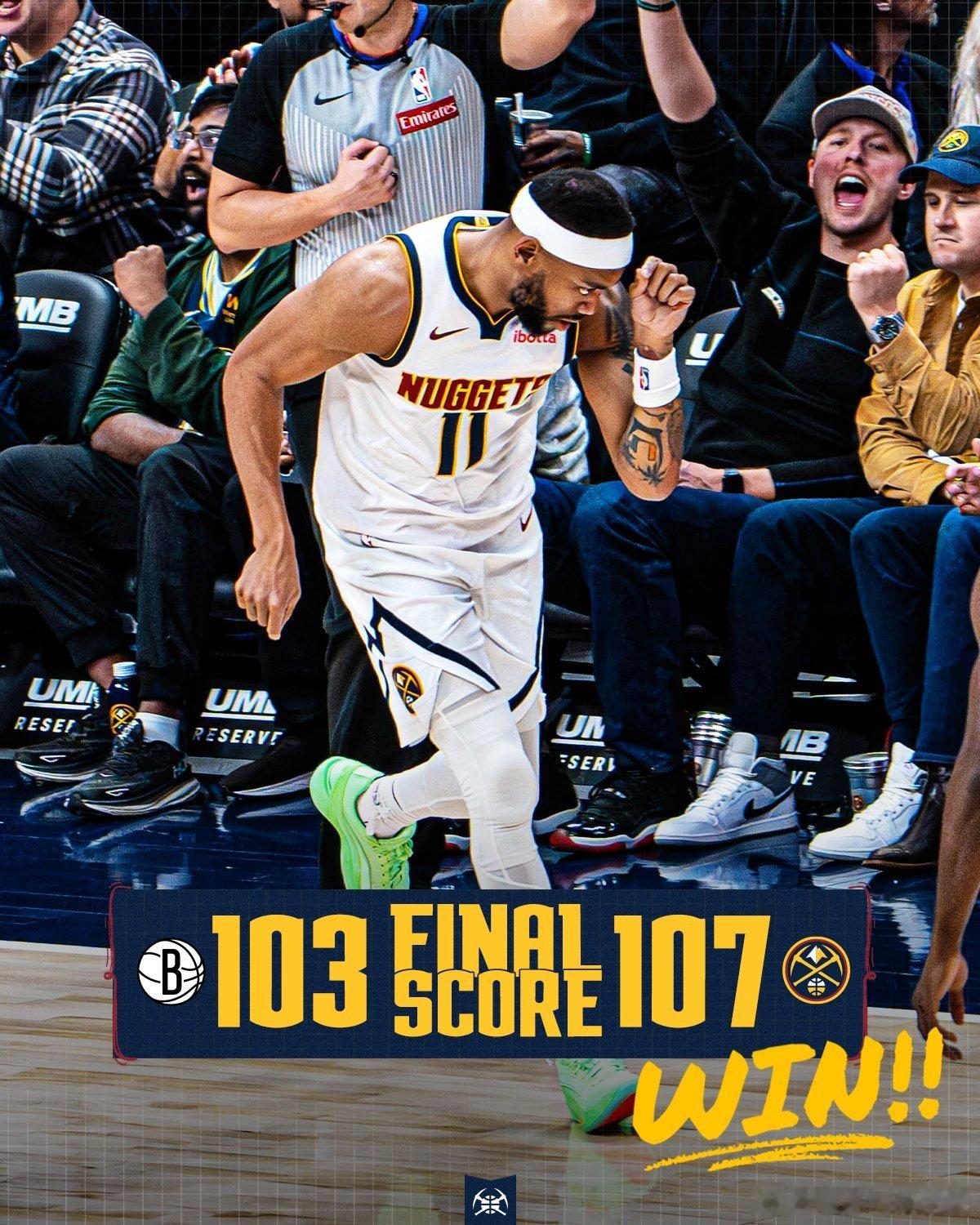 拒绝被逆转!掘金主场107-103险胜篮网,送给对手7连败。