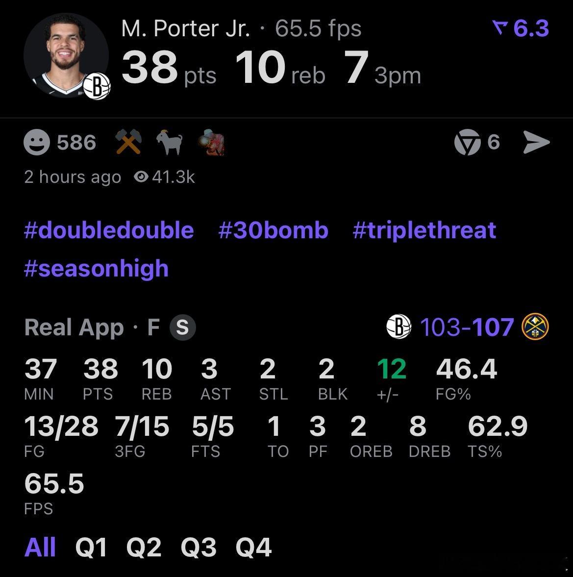 拒绝被逆转!掘金主场107-103险胜篮网,送给对手7连败。小波特战旧主,空砍3