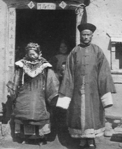 清末北方乡村,土坯墙的民居门口,一位清代基层官员的婚礼现场,他站得笔直,一身官服熨帖;身旁的妻子低着头,旗装的领口绣着简单的纹样,头饰也并无过多装饰。 在彼时的乡村社会,想要说服这对新人并肩站到镜头前,曾耗费不少周折:传统礼教对女性的束缚刻入日常,“年轻妇女不得抛头露面” 是不可逾越的规矩,而新鲜的照相机,更被视作会让女子 “外露身形、有失体统” 的存在,这张珍贵的同框,也因此成为突破旧俗的难得印记。