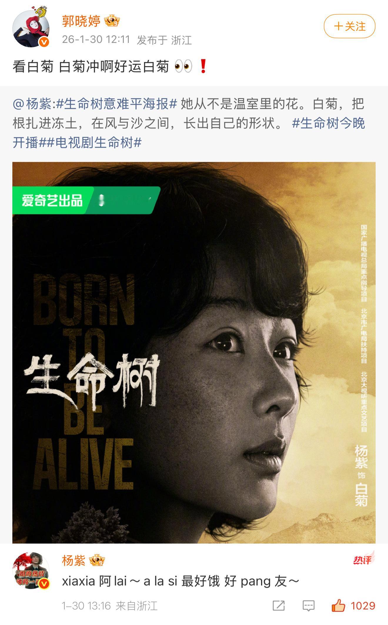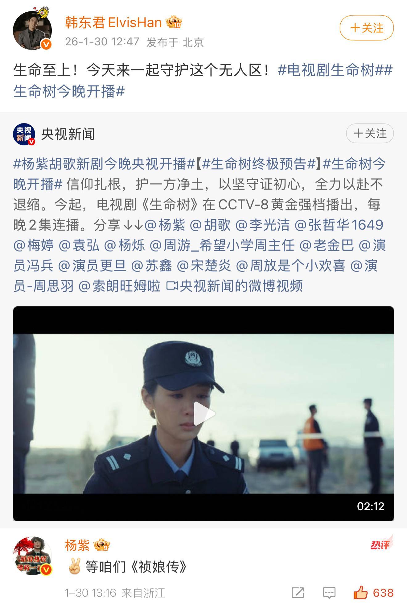 张雅钦给紫紫包场了300座!!感谢林志玲、韩东君、郭晓婷给杨紫白菊做宣传生命树招