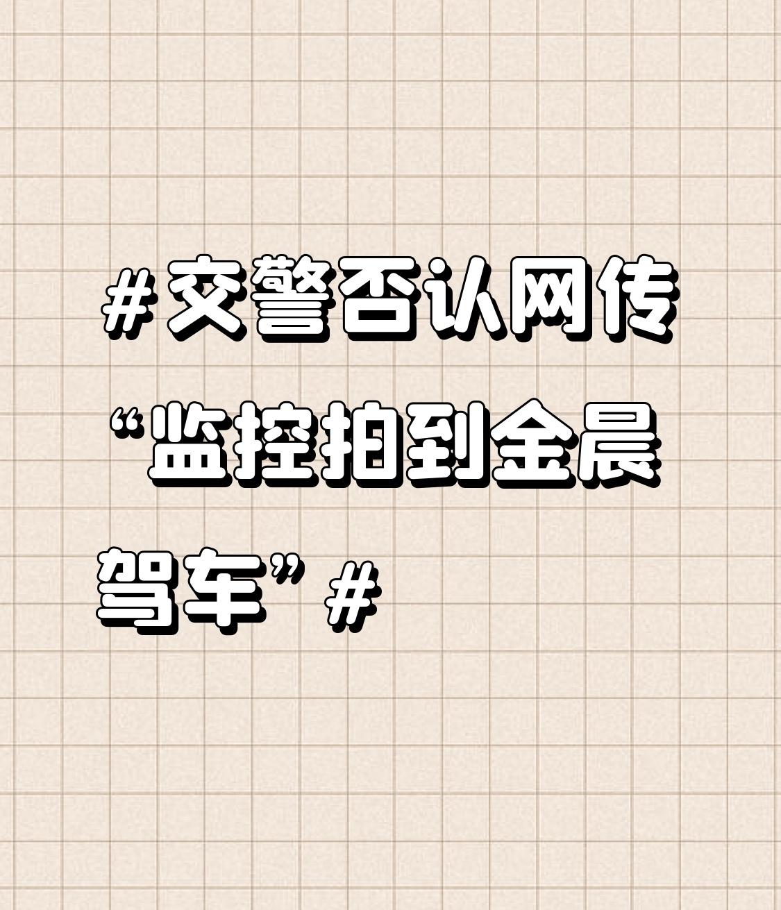 交警否认网传“监控拍到金晨驾车” 最近交警否认网传“监控拍到金晨驾车”这个话题挺火。网上传得有鼻子有眼,说监控拍到金晨驾车,一时间各种猜测都来了。可交警一出来否认,这剧情就反转了。现在网络上的消息真是真假难辨,一个小传闻就能引发大量讨论。就像这次金晨的事儿,不知道是有人故意编造,还是信息在传播中出了偏差。明星一举一动都受关注,有点风吹草动就容易被放大。希望大家以后面对这类消息能多些理性,别轻易被不实信息带跑。