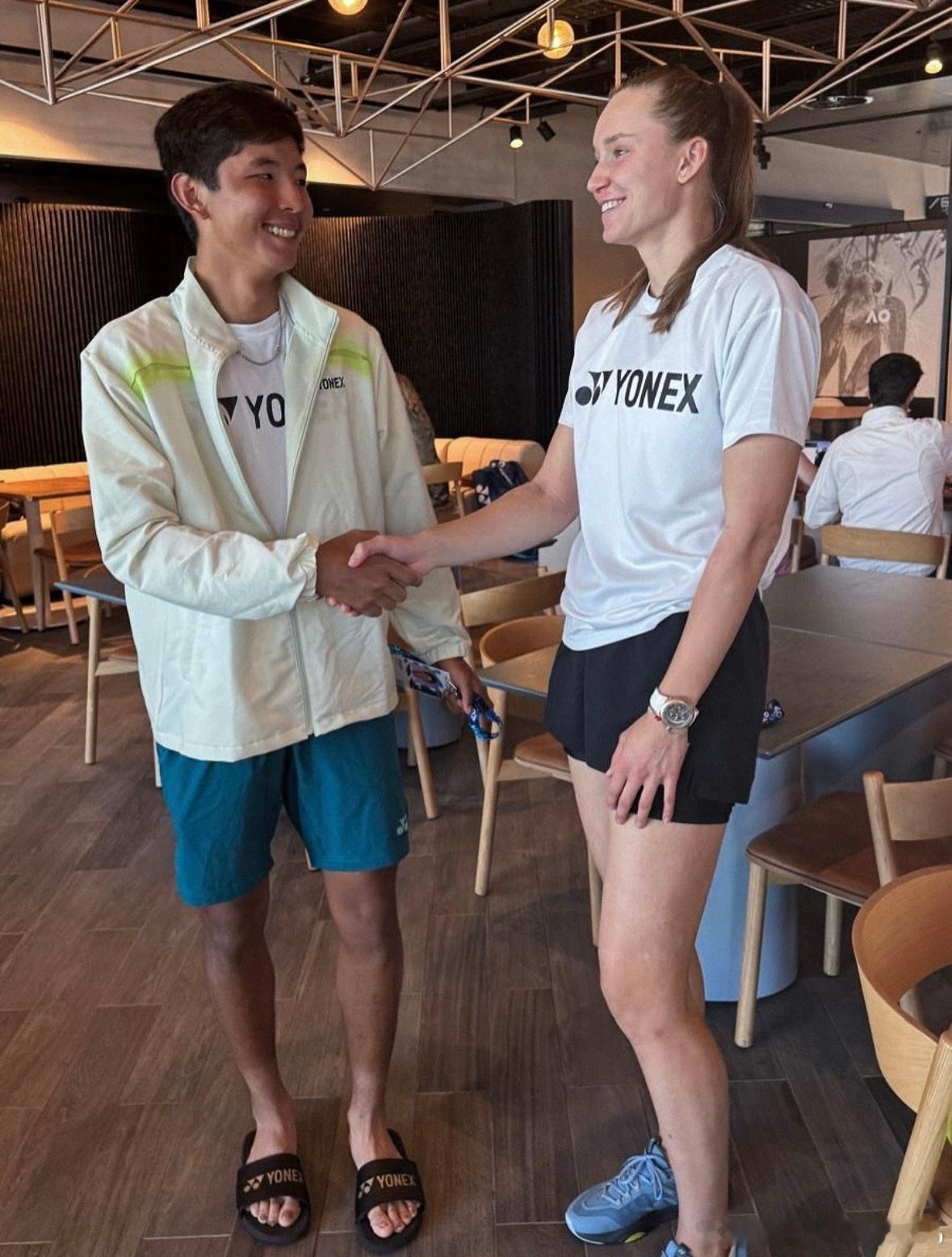 莱巴金娜!和哈萨克斯坦🇰🇿青少年球员Zangar Nurlanuly见面啦,Zangar目前17岁,参加澳网2026男单青少年比赛,已经打入半决赛,前面经历2小时50分钟三盘逆转击败了Kai Thompson!哈萨克斯坦网协发图文:两位在澳网创造历史的球员📷澳网2026wta