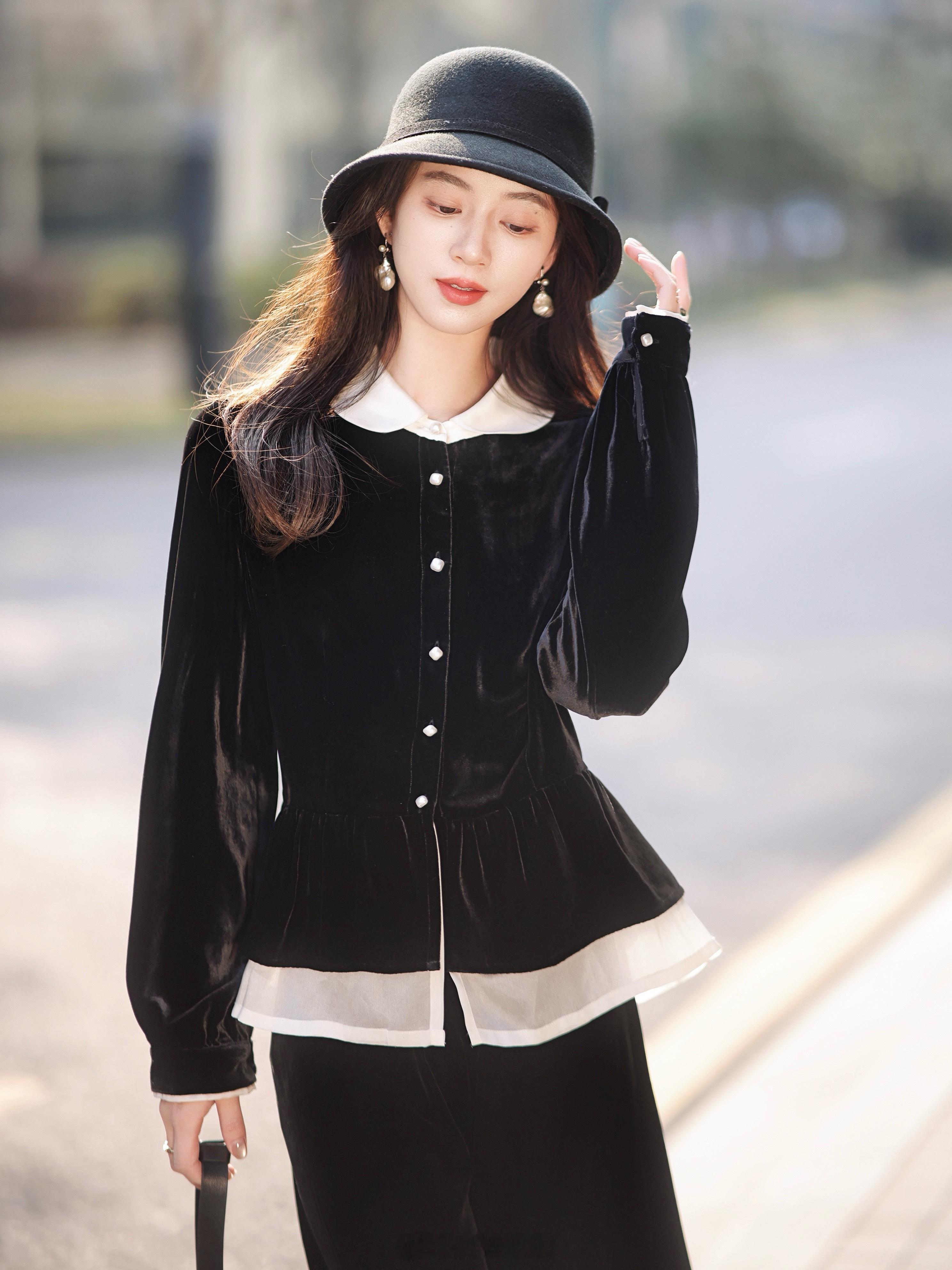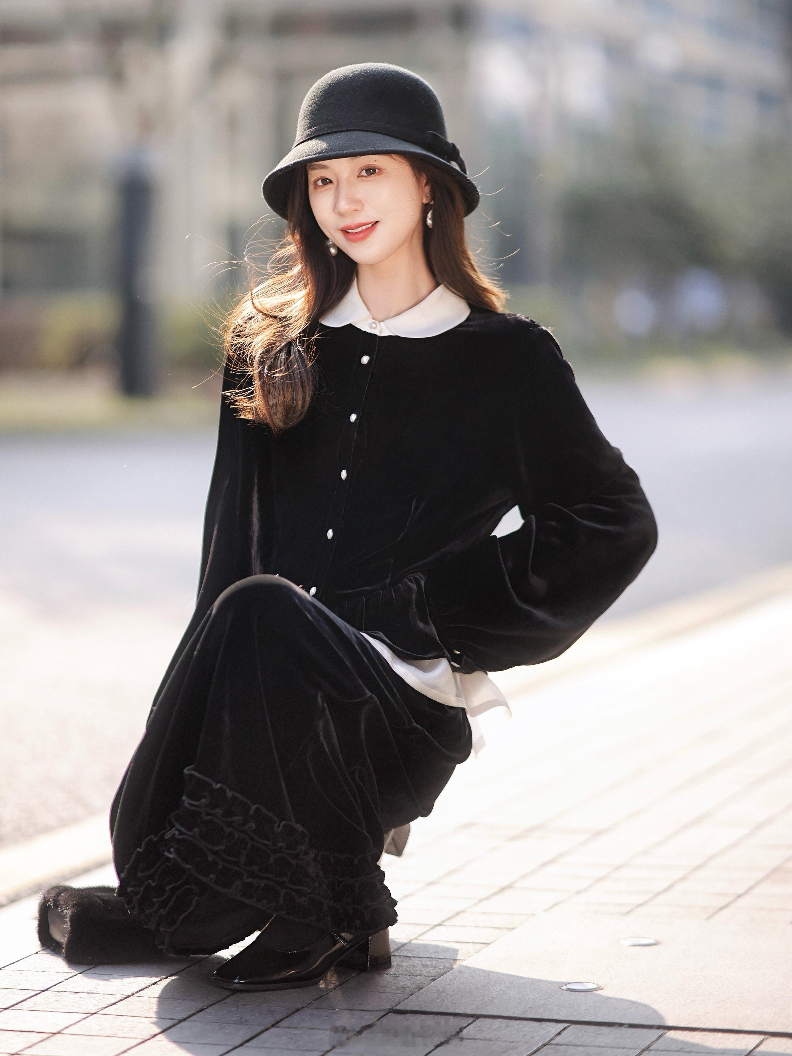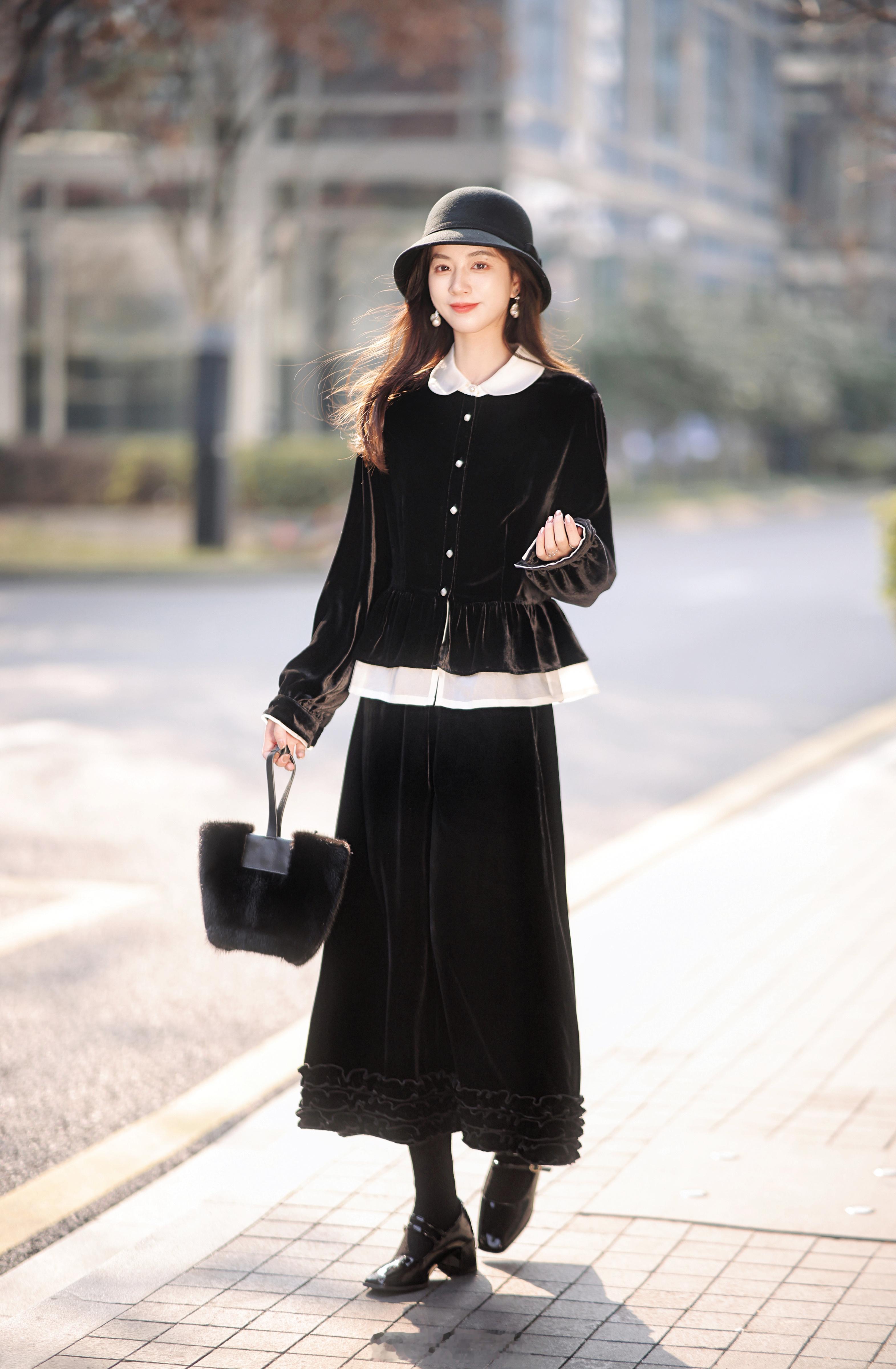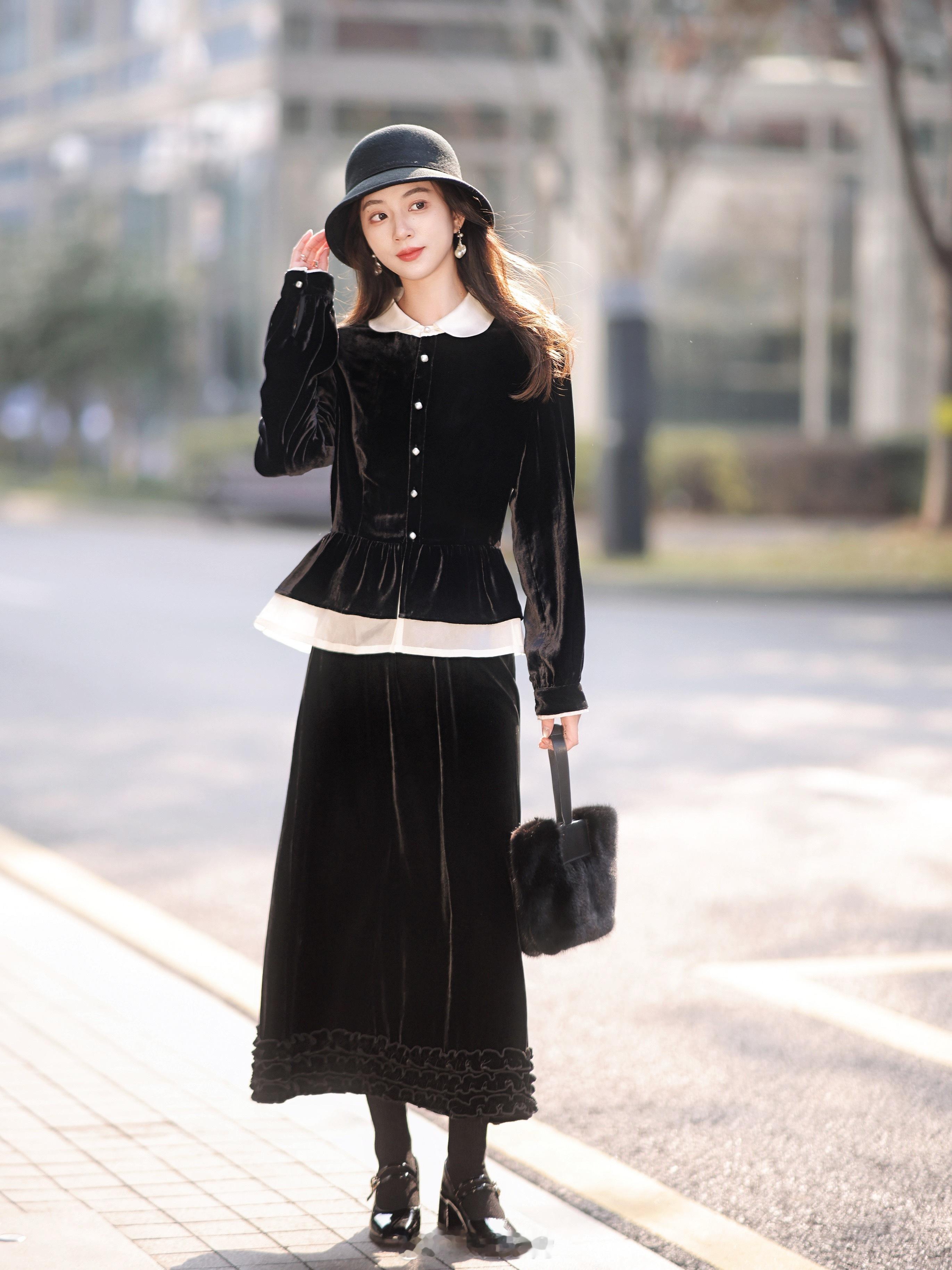 “优雅无需多言🎵”经典赫本黑+100真丝丝绒 软到沦陷的触感/珍珠般光泽 实物