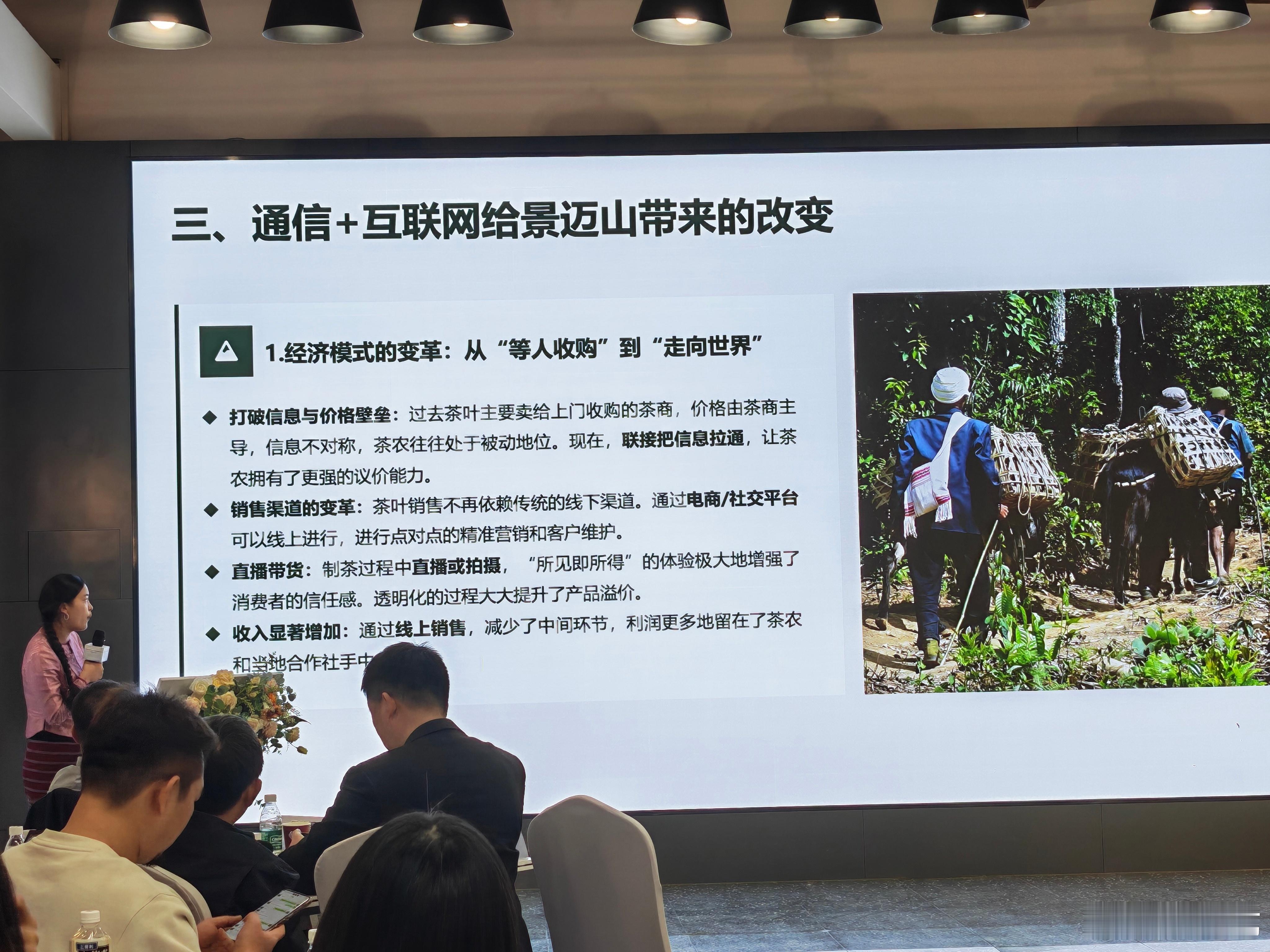 来自景迈山的拉祜族姑娘,现场分享通信和互联网给自己家乡的巨变,从“等收购”到“走向世界”的经济模式变革、从“藏在深闺”到“天下皆知”的品牌飞跃,以及从“模糊探索”到“精准体验”的旅游升级。通信与互联网技术,正让这座千年古茶山焕发出前所未有的活力与魅力。