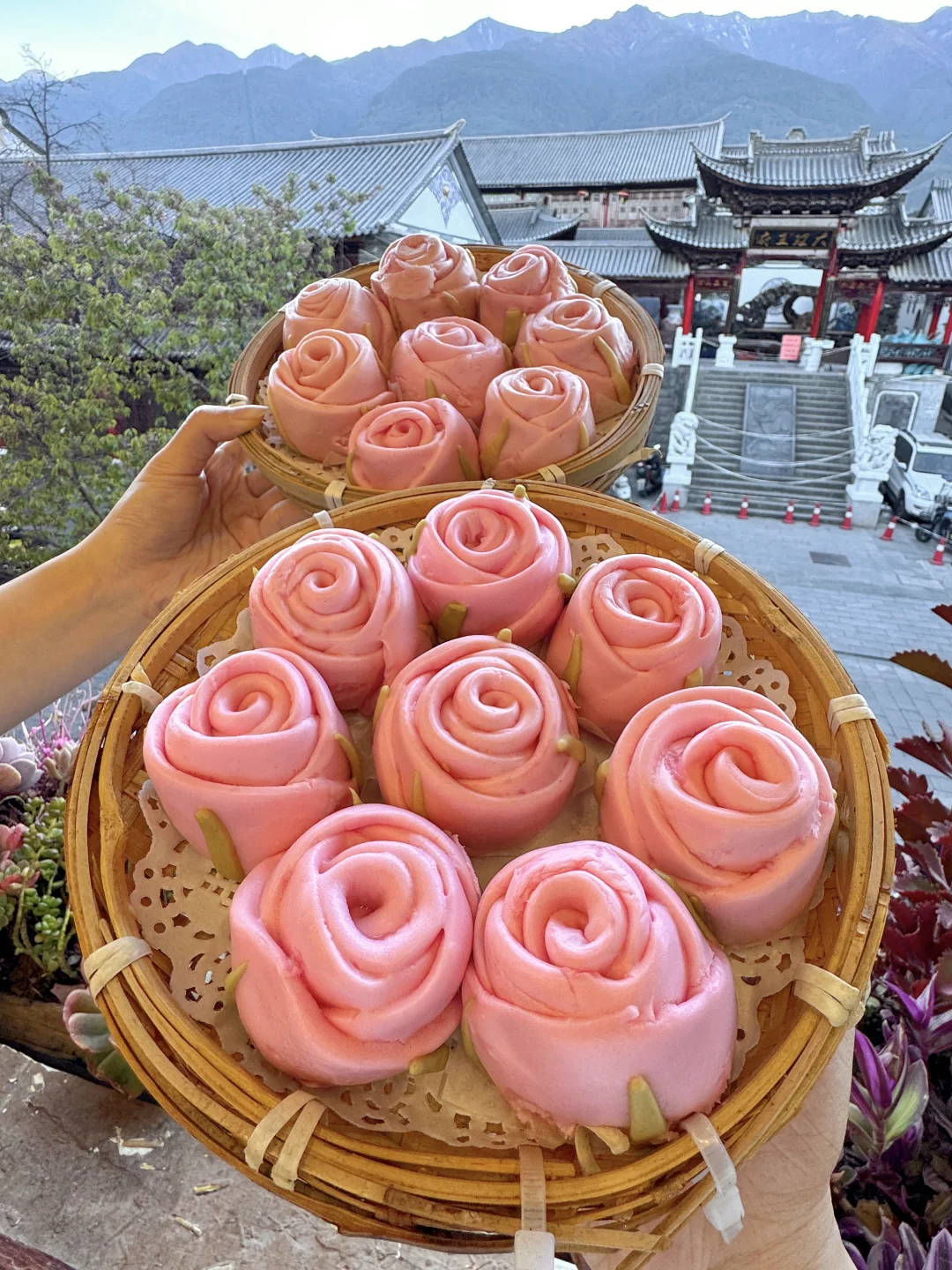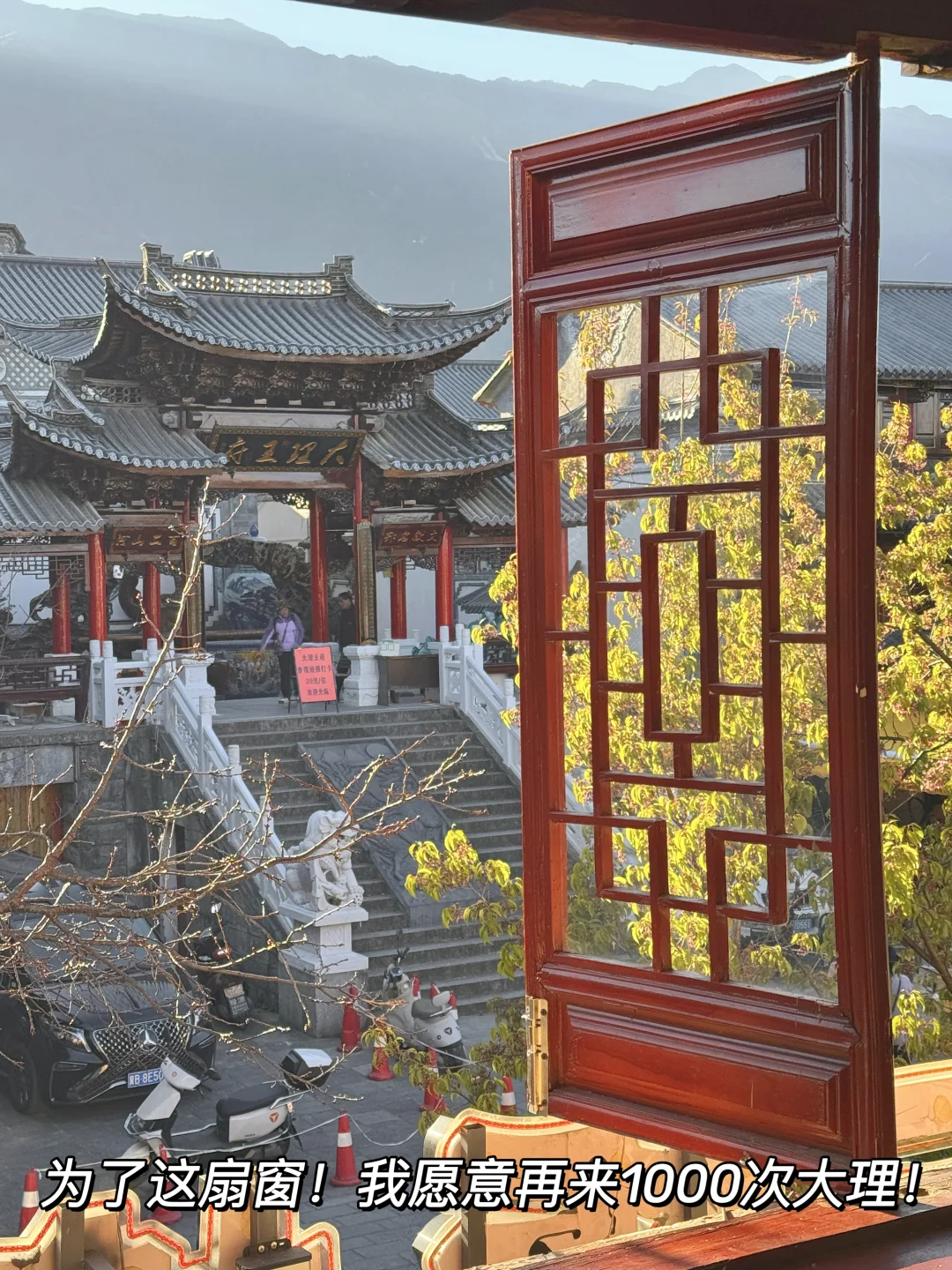感谢本地人带路!!好美的窗景🪟对面就是苍山、大理王府、风和日丽的时候配上风铃🎐白族刺绣框画,真的是把大理的美景和美食完美结合了!!!