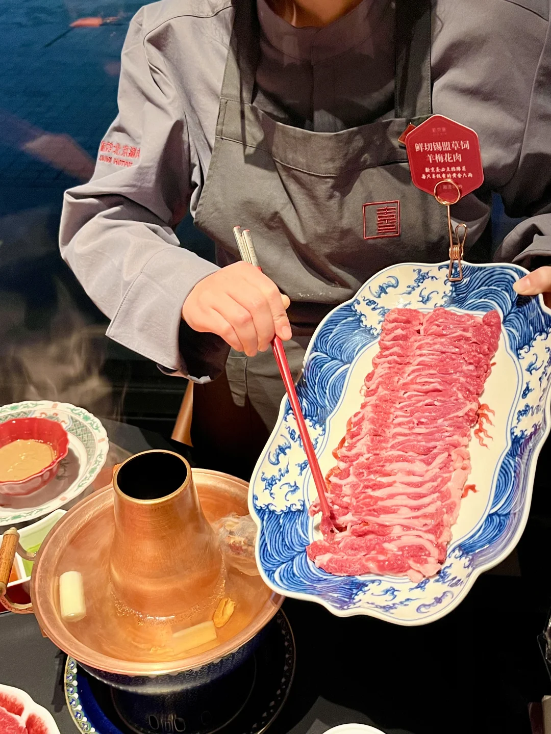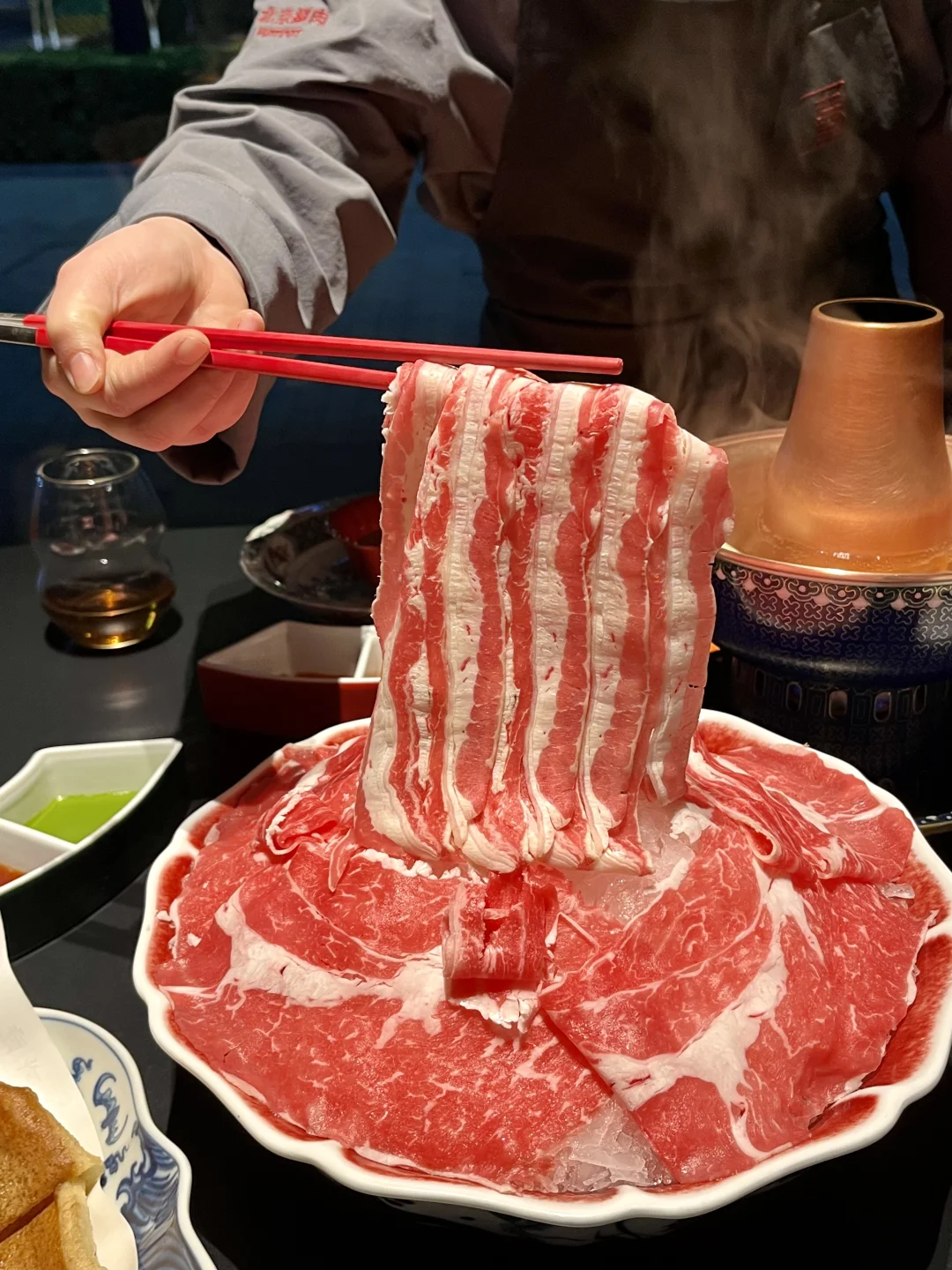 在华商寻味,被一隅京韵吸引。 入门便是暗调雅座与珐琅铜锅, 氛围沉静高级。💕 这里不仅🈶涮肉的暖意, 每晚更有京剧演出,风雅十足。 手切鲜羊拼盘,立盘不坠,肉质鲜嫩。 🔥热气腾腾的清汤锅底, 搭配独特的沙葱椒麻汁, 让羊肉风味升级。🥰 再来一口老北京糖油饼, 现炸上桌,脆软香甜。😋 📍新京熹·北京涮肉(成都华商) 成都聚会成都北京涮肉成都探店成都宴请成都清汤火锅成都吃喝玩乐成都美食成都火锅