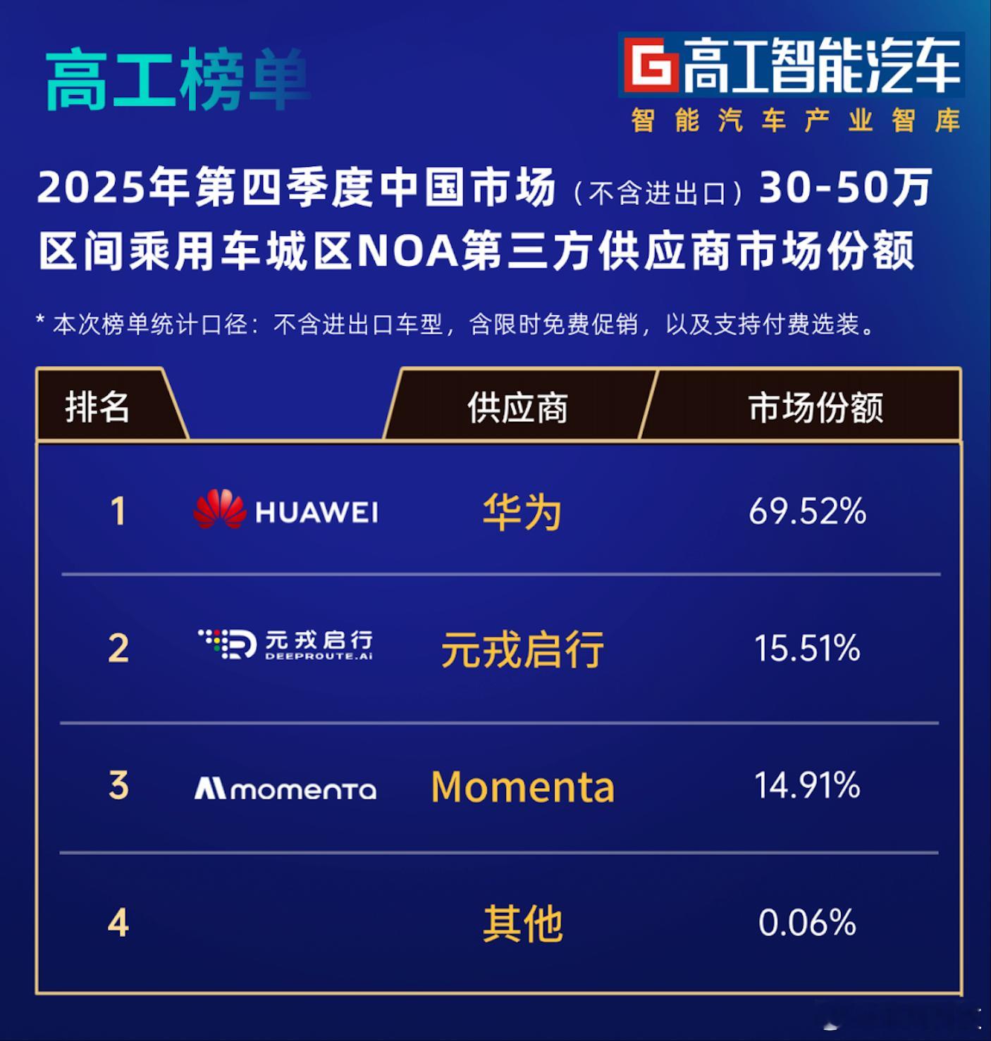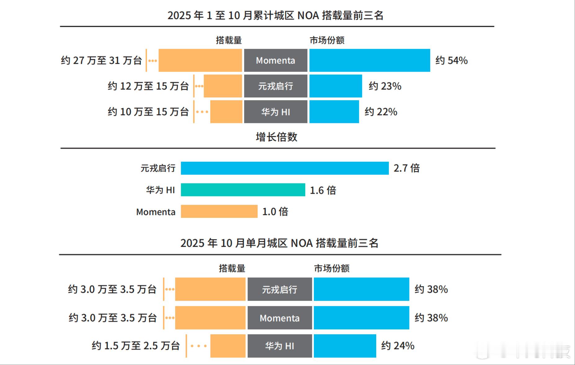 元戎启行这波直接鲨疯了啊!2025年10月的单月市占率差点摸到40%,前10个月的增速更是飙到2.7倍,数据亮眼到没话说。就连高工智能汽车研究院刚出的榜单更能印证实力,元戎在2025年第四季度30-50万价位乘用车城区NOA第三方供应商里排第二,15.51%的份额让它站稳高端市场头部。2025年的元戎启行直接把增长拉满,新智驾订单拿到手软,硬生生从赛道里冲出来,成了高阶智驾市场最亮眼的黑马。