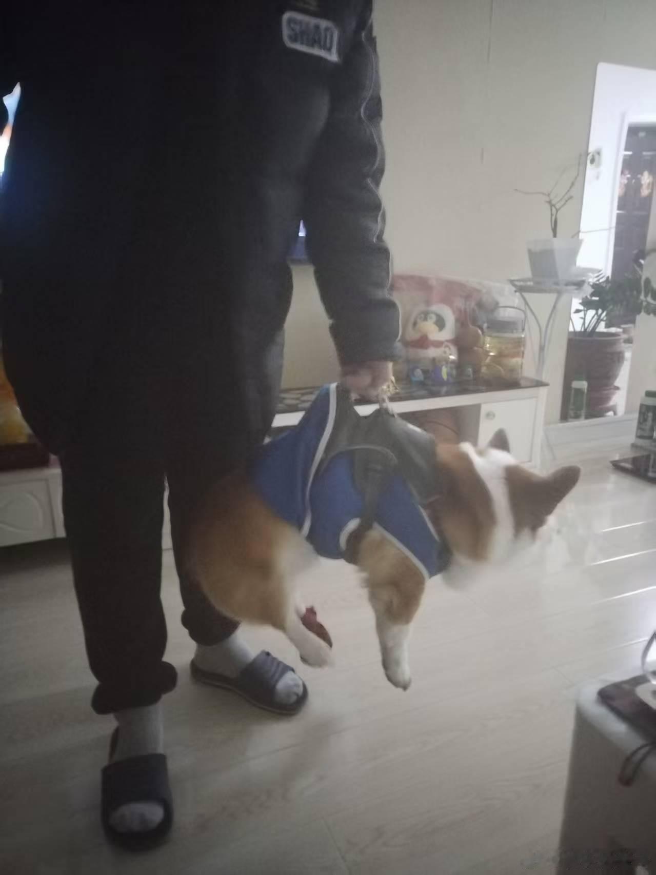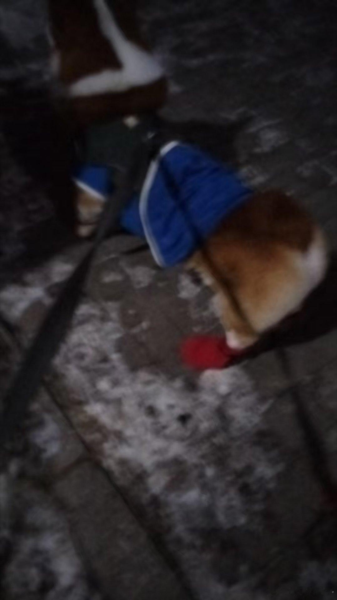 我妈买的柯基鞋子没到,拿袜子给做了四只鞋套。刚穿上还行,结果我爸遛了一圈回来就剩了俩