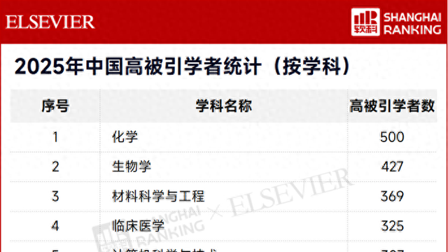 中国高被引学者年度榜单:十强高校均有超百人上榜,来自这个学科的学者最多
