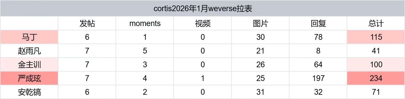 Cortis成员一月 wvs 营业拉表比起怀疑营业最多的严成玹恋爱 营业最少的赵