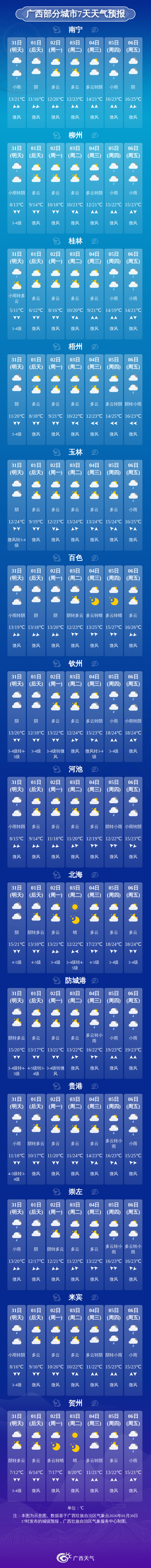 未来一周天气展望广西气象台30日发布预报: