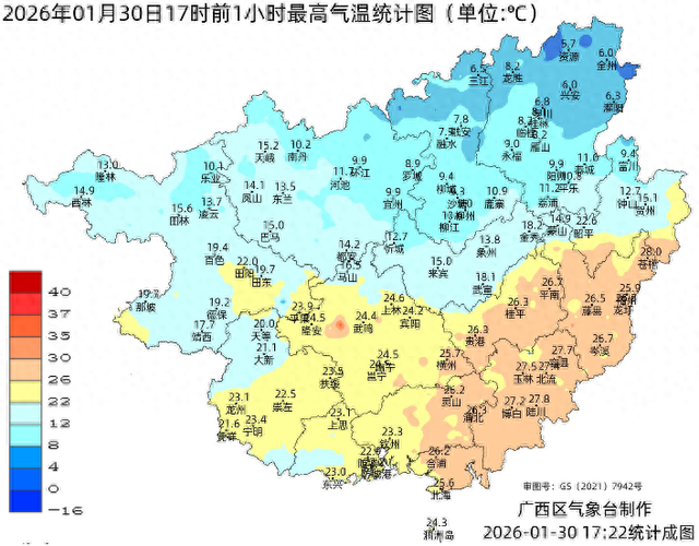 今天白天的广西气温地图被“一分为二”