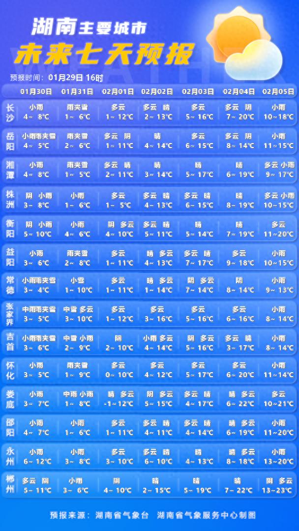 湖南最新天气预报