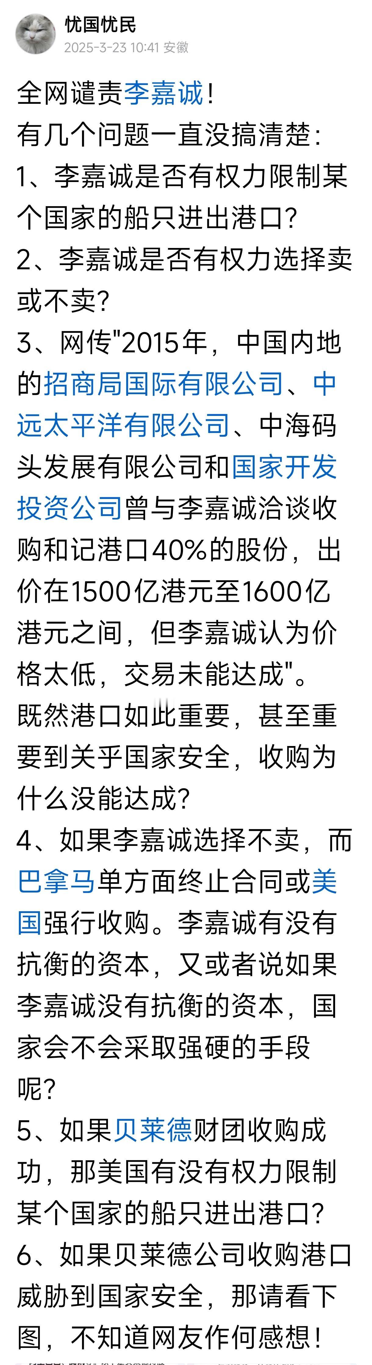 去年3月23日,我对李嘉诚出售巴拿马港口的一些看法,有兴趣的网友可以看看! 这么一闹,鸡飞蛋打了,咋办?现在骂谁?