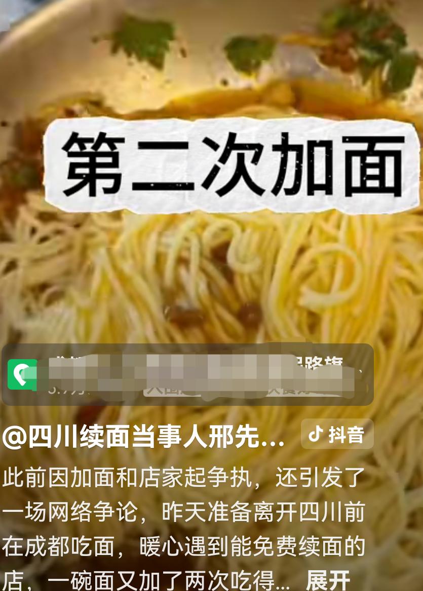四川乐山续面事件 当事大学生又发视频了 仍旧是找了家免费续面的面馆,仍旧是加了