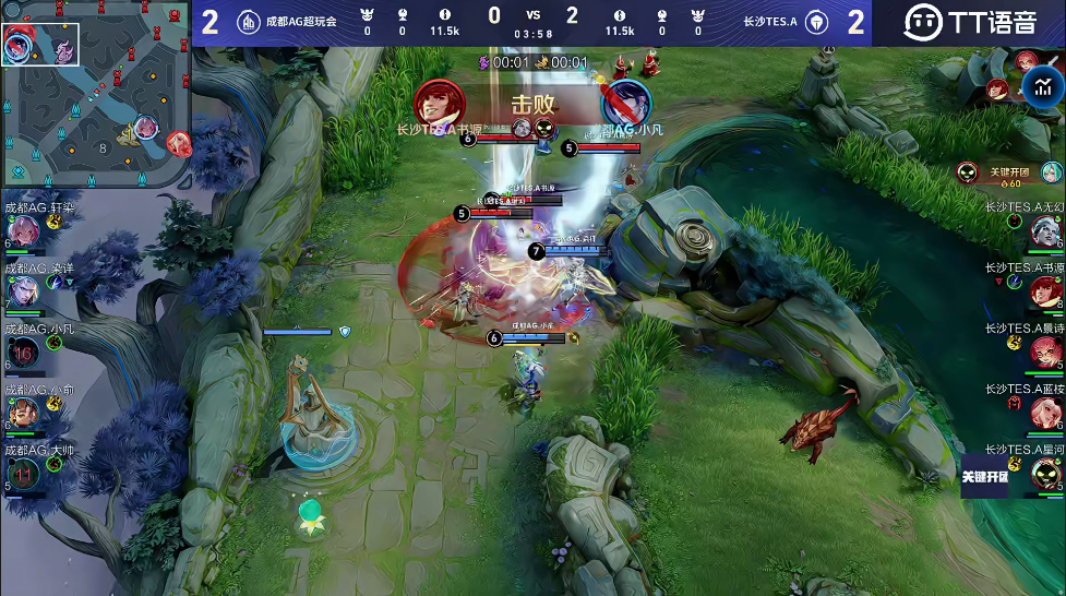 TES瞬间反包,在上路击杀中辅二人打出0换2