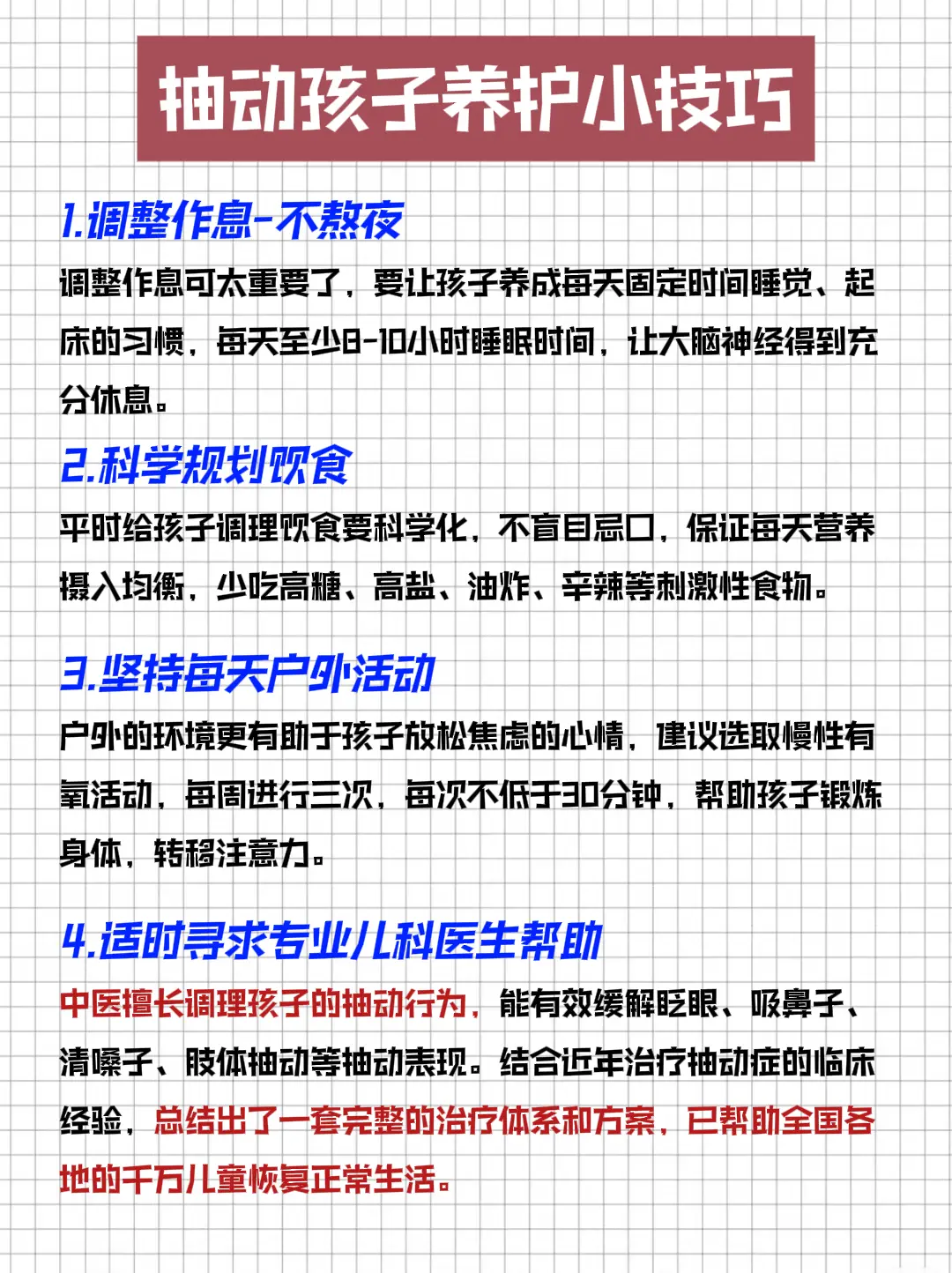 附上【孩子抽动护理的小技巧】,参考即可