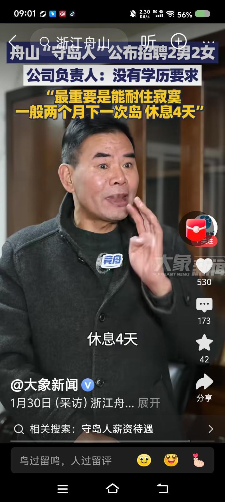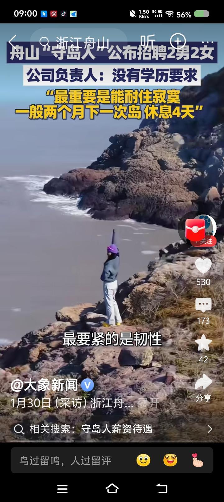 “守岛人”,你当么?—— 据报道,某养殖公司招聘“守岛人”:“第一,会游泳。第二