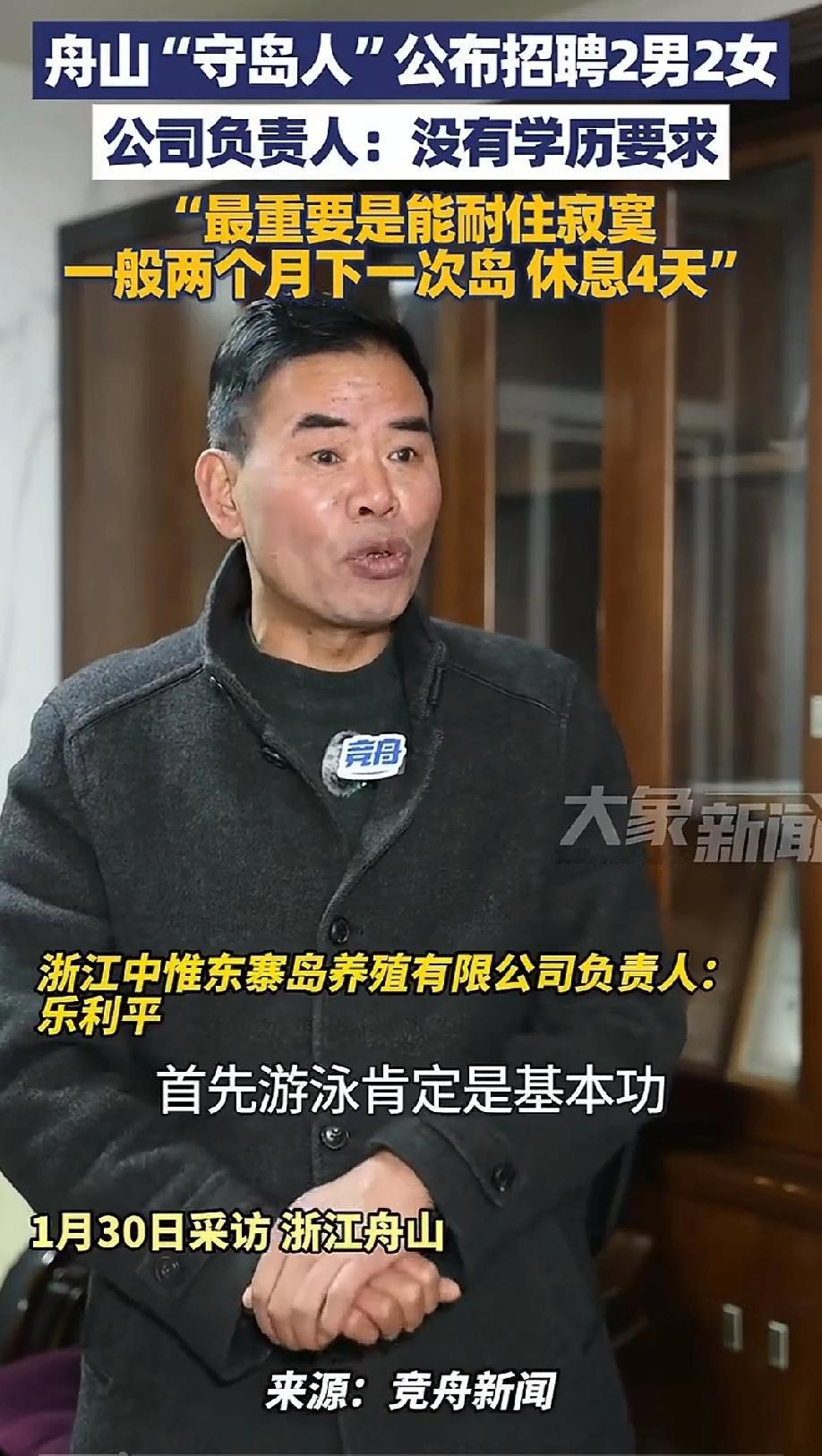 舟山守岛人招2男2女:2个月休4天 舟山一则守岛人招聘启事突然爆火,2男2女的名额,竟让招聘电话被打爆,接线员连喝水的功夫都没有。这份2个月休4天、无学历要求的工作,为何让无数都市人趋之若鹜?有人说这是带薪隐居的神仙工作,也有人直言这是披着浪漫外衣的“海岛牢笼”,而这场热议的背后,藏着当代人最真实的生活困境与内心渴望。 在被KPI、内卷和复杂人际关系裹挟的都市里,这座孤岛成了无数人心中的“精神避难所”。不用挤地铁赶早八,不用应付职场人情,每日只需巡查养殖区、维护设备、喂喂大黄鱼,海鲜管够,海风作伴,连网都有,这样的日子戳中了多少想逃离喧嚣的人。网友们纷纷喊话“我能去”,有人羡慕不用社交的社恐天堂,有人向往钓鱼看海的慢生活,仿佛守岛就能摆脱生活的一地鸡毛,活成自己想要的样子。 可浪漫的滤镜背后,是赤裸裸的现实考验。岛上没有空调,冬扛湿冷海风,夏受烈日暴晒,饮用水和物资全靠船每周配送,鼠患、台风都是家常便饭;2个月休4天的规则,意味着至少一个月不能下岛,无边无际的孤独,才是最磨人的考验。有年轻人一腔热血上岛,3天就因熬不住寂寞求助离岛;也有像岳女士这样的勇敢者,辞掉20年的职场工作奔赴海岛,却也坦言深夜想喝一杯奶茶的隔绝感,和面对9级大风的恐惧。 更现实的是,这份看似无门槛的工作,实则藏着隐形要求:扛得住艰苦的身体、修得了设备的能力、耐得住寂寞的心态,三者缺一不可。那些喊着想去的人,大多只看到了山海相伴的美好,却忽略了守岛背后的责任与坚守。就像网友说的,很多人只想去岛上发呆,可真正的守岛,从来都是日复一日的承担。 这场守岛热,从来不是简单的工作选择,而是当代人对生活的一次集体反思。我们向往的从来不是孤岛,而是摆脱焦虑、回归简单的生活状态。但真正的自由,从不是逃避现实,而是无论身处闹市还是孤岛,都有直面生活的勇气。 你会为了逃离都市,去舟山做一名守岛人吗?评论区说说你的答案!