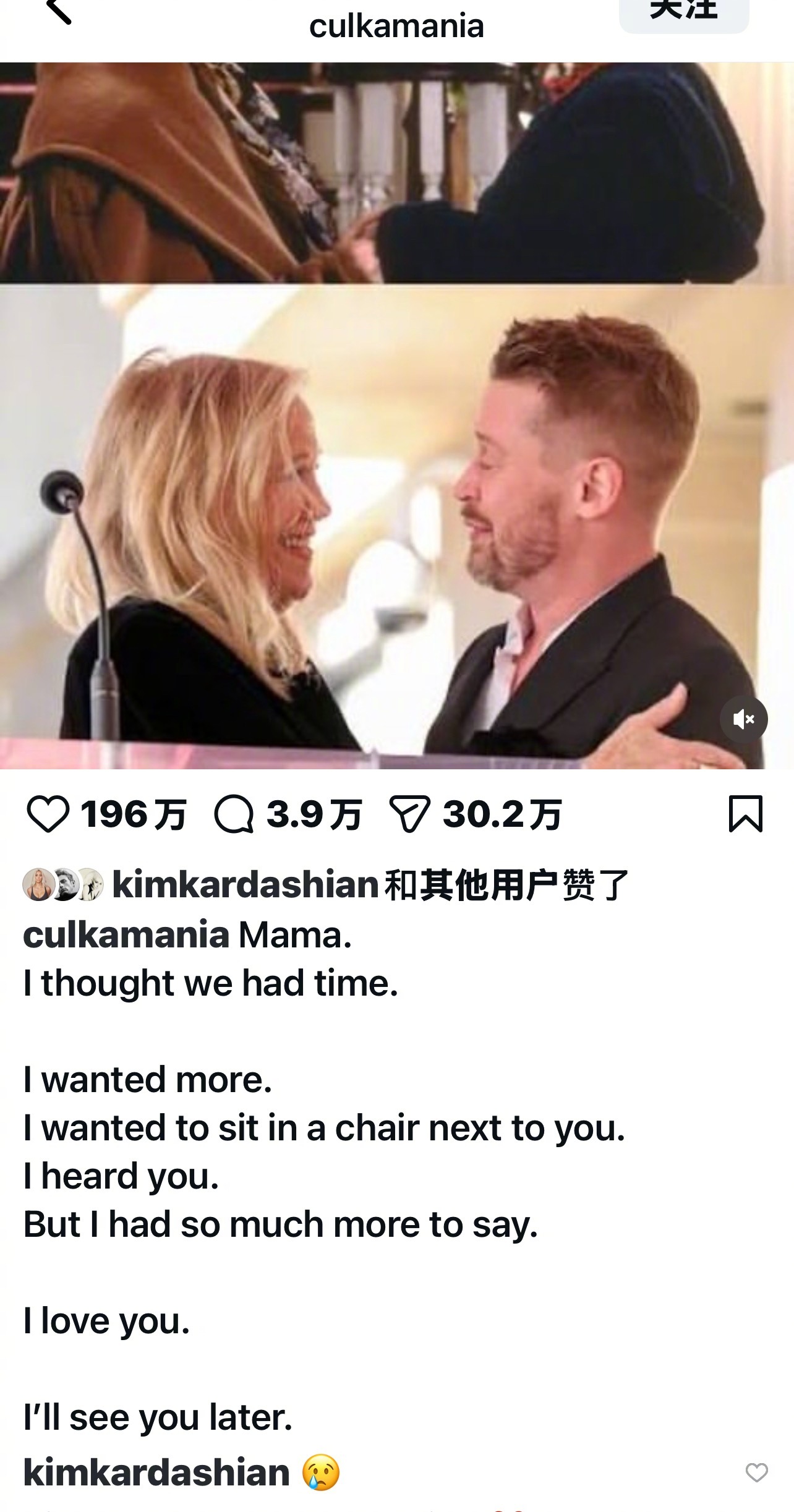 《小鬼当家》里妈妈的扮演者Catherine O'Hara凯瑟琳·奥哈拉忽然去世,享年71岁。“儿子”麦考利.卡尔金发文悼念:“妈妈,我以为我们还有时间。我还想多陪陪你。我想坐在你旁边的椅子上。我听到了你的话,但我还有好多话想说。我爱你。回头见。”
