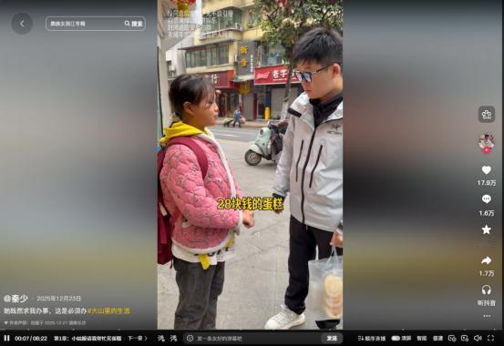 22天内父母双亡!2025年12月23日,一网友发布视频,感动无数网友!10岁女童在历经父母双亡后,徒步下山,用饭钱为84岁奶奶买蛋糕! 很多人在抱怨生活苦难的时候,不妨将目光转移到社会的一些角落,那么就能发现比自己更苦更难的人仍有很多。我们国家是一个人口大国,哪怕国家一直在大力的扶贫。但仍旧有一部分的家庭,在饱受苦难的折磨。 就在2025年12月23日的时候,因为网友发布的一段视频,让无数网友泪目。更是有网友在评论区留言称,都说男儿有泪不轻弹,但是自己却从头哭到尾。 据该网友视频记载,在蛋糕店门口,这位网友被一位年幼的女孩拦下。女孩手钻紧巴巴的钱,低声祈求网友进店,帮其购买一个28元的蛋糕。在问及女孩为什么不自己进去时,女孩说自己摔了一跤,鞋子满是泥土,不想进店给店员添麻烦。 女孩的这句话立即让网友为之动容,网友没有丝毫的犹豫,进店为女孩买来蛋糕。而在问及女孩的家庭住址以及为什么独自一人来买蛋糕时,女孩哽咽了。 女孩的家在附近山上,而之所以会一个人独自来买蛋糕,是因为父母双亡。年幼的她已经撑起了一个家庭的重担,而蛋糕是给84岁的奶奶购买。 据女孩表示,奶奶已经84岁,但却没有吃过蛋糕。所以才会拿自己的饭钱,给奶奶购买蛋糕。女孩的言行让众多网友落泪,而网友在得知之后也备受感动,向女孩及其家人伸出援助之手。 从女孩的身上,我们看到了什么叫做“穷苦人家孩子早当家”。对此,您怎么看?欢迎评论区留言您的看法。 (信息来源:她既然求我办事,这是必须办-秦少)