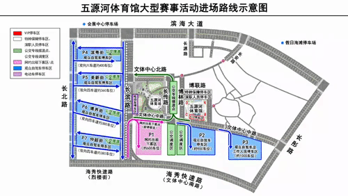 进场时,文体中心中路、长传路、文体中心北路路段按规划交通流线有序通行,并根据车流量实施适时交通管控措施。