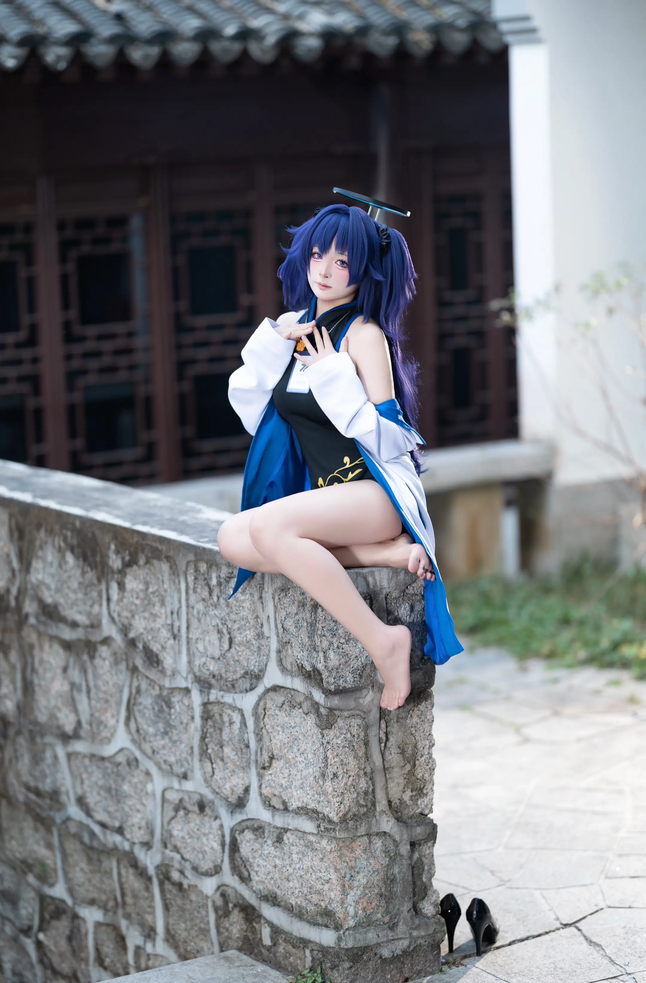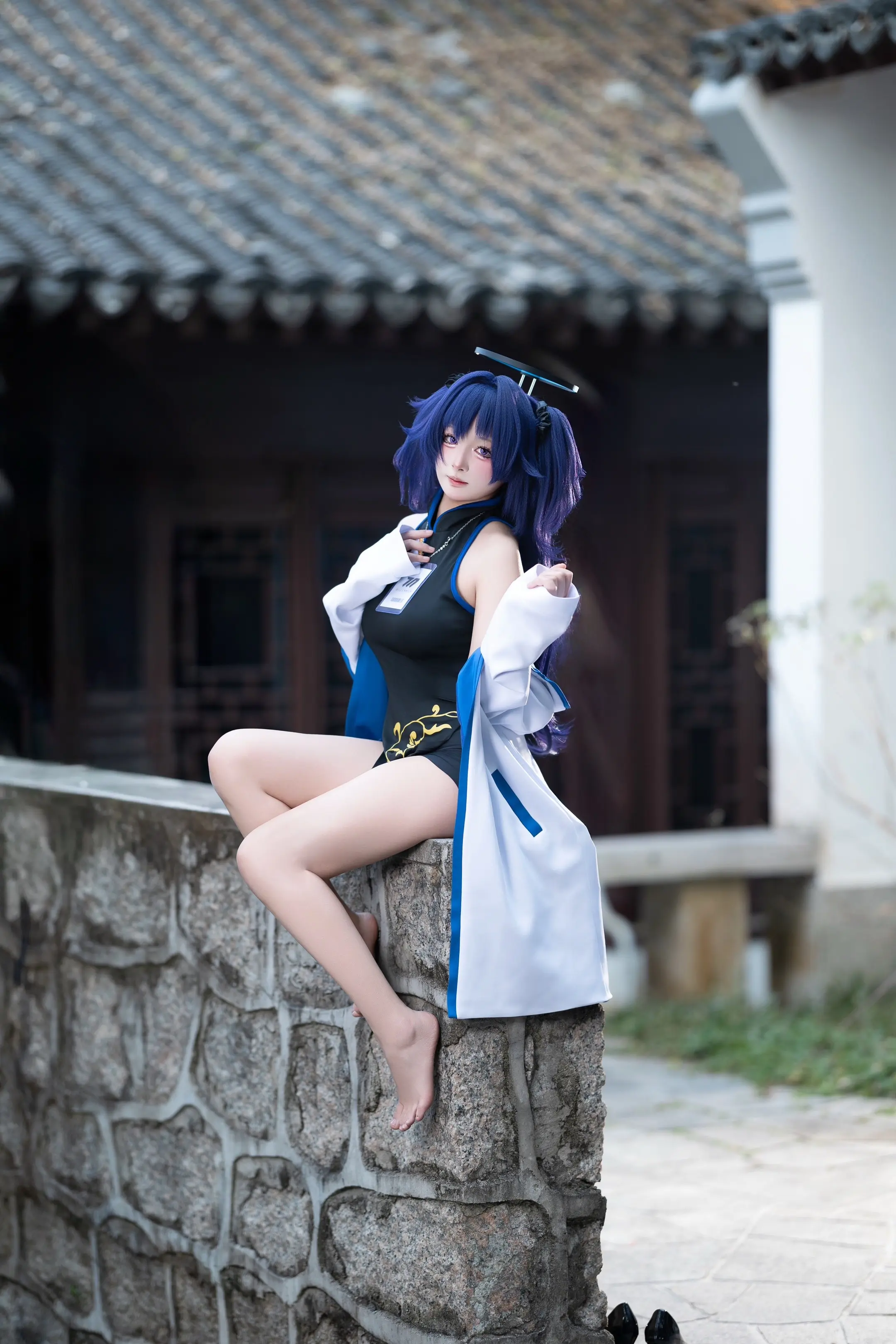 紫色旗袍包裹着东方韵味,在篮球馆的灯光下,碰撞出刚柔并济的火花。高开衩的裙摆随
