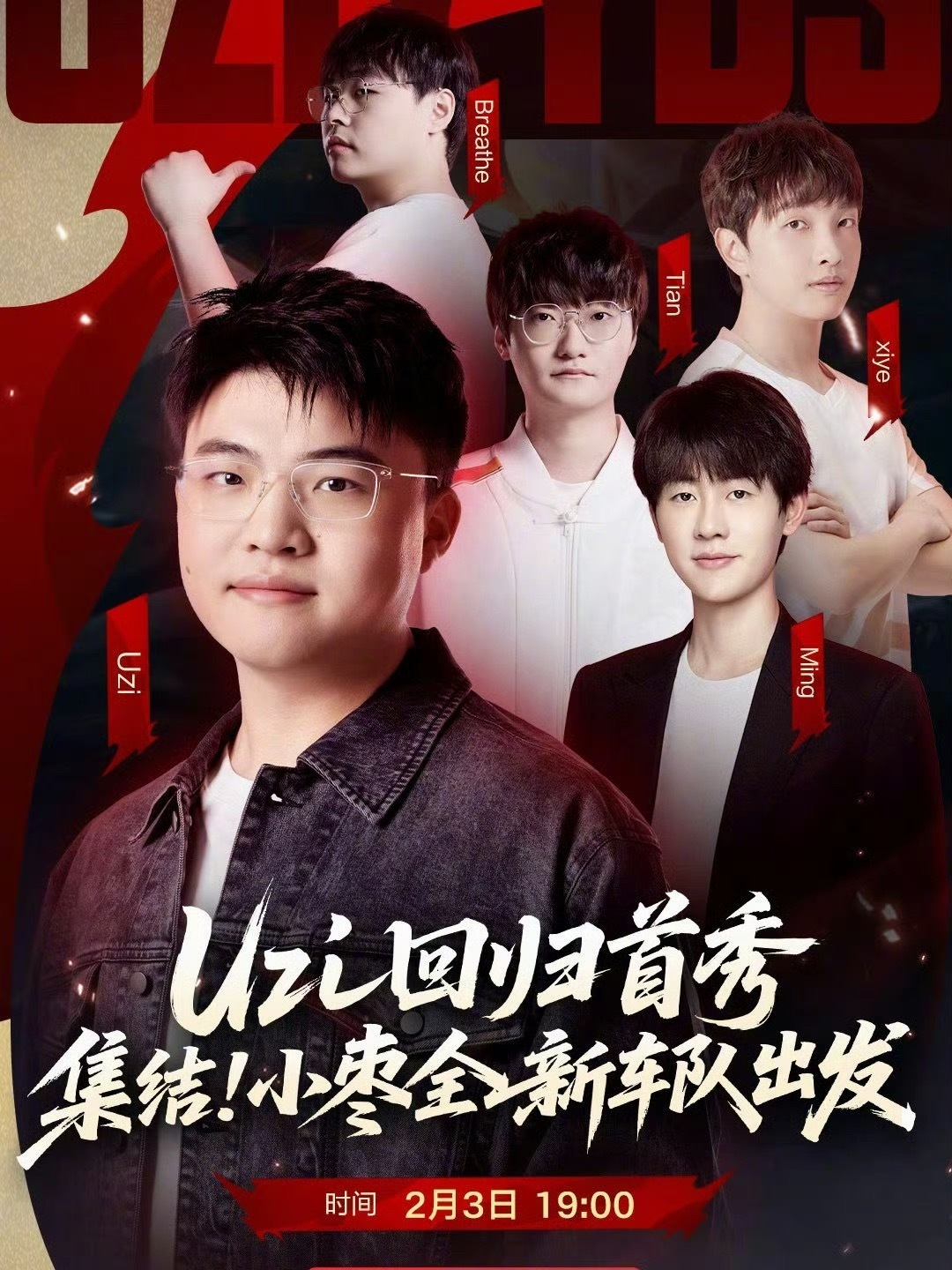 Uzi回归狂小狗回来了!近日Uzi官宣复出,与呼吸哥、Tian、Xiye、Min