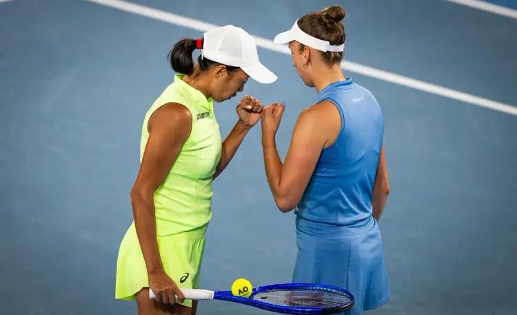 1月31日,澳网女双决赛展开争夺,中国金花张帅搭档梅尔滕斯出战,对手是7号种子达尼丽娜/克鲁尼奇。本场比赛张帅/梅尔滕斯克服首盘1-4落后的不利局面,7-6(4)、6-4直落两盘战胜对手,成功拿下了今年的澳网女双冠军。澳网张帅