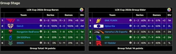直播吧1月31日讯LCK杯超级周T1击败DK,目前远古龙组和大龙组同分,明日如果GEN取胜,则T1、GEN所在的大龙组变为胜者组,DK、HLE所在的远古龙组变为败者组,T1、GEN晋级季后赛,同时BFX由于小分优势排名高于DK,BFX也将晋级季后赛。