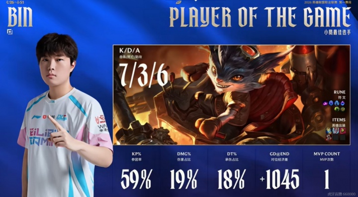 双眼皮定妆照有股媚劲!Bin兰博对线单杀狼母 7/3/6收获本赛季首个MVP
