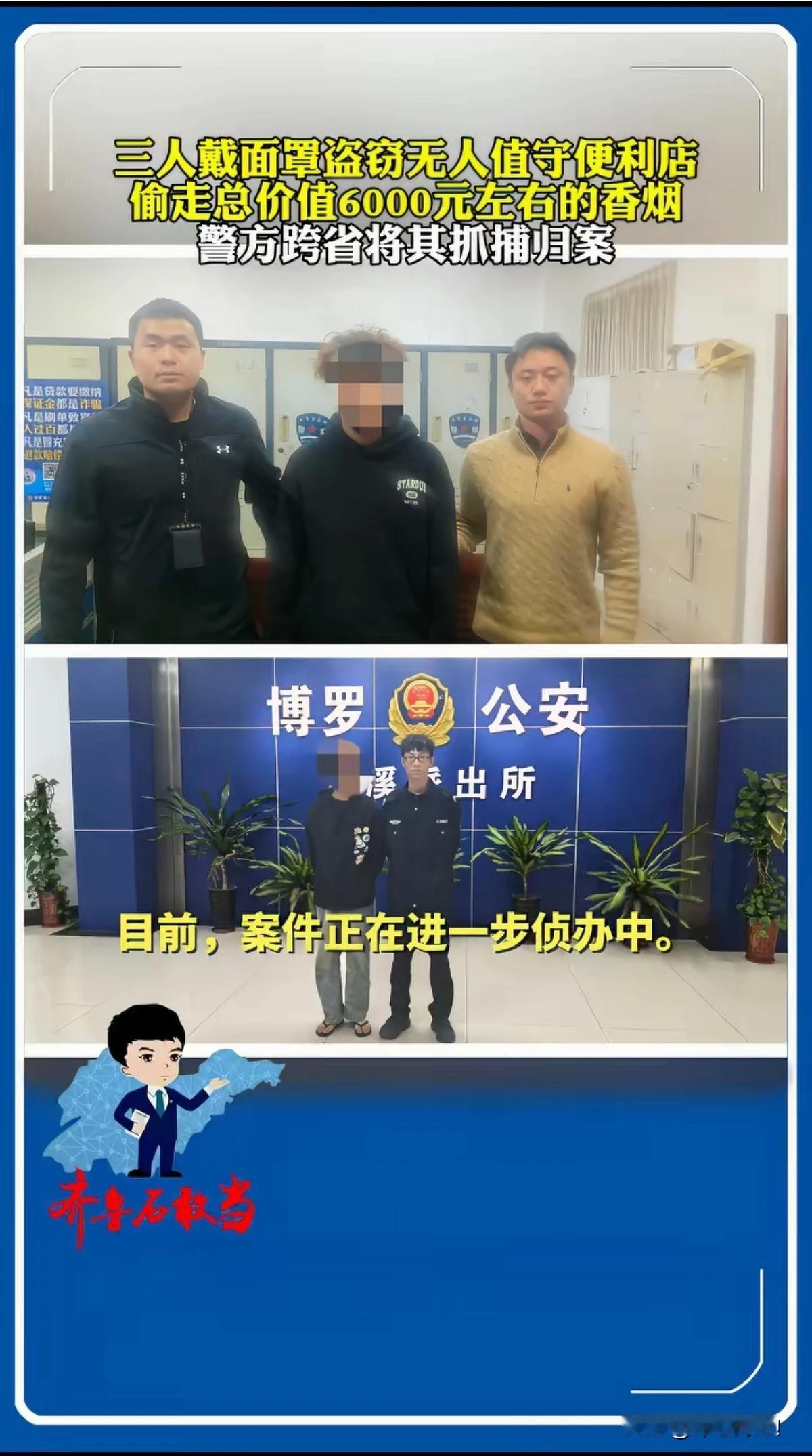 3人蒙面扫码进无人便利店,偷走价值6000元的香烟!可他们自己的“损失”更惨重! 一蒙面男子拿手机扫二维码进入无人便利店,一蒙面女子接过手机,手护玻璃门,防止门关上。蒙面男子进入店内,爬上柜台,偷走价值6000元的香烟。随后,两人坐上在门口等待的小车,绝尘而去。最后,警方通过跨省,抓住了这三个蒙面大盗。有意思的是: 这三个蒙面抢劫,难道不知道进入无人便利店扫二维码,就会留下记录,留下作案痕迹。还有,那个把门看风的蒙面女子,门上留她的指纹。开车有车牌、有记录。再说,现在到处都有摄像头,有天眼,能跑到哪里去? 可能他们还没想到,他们抢走价值6000元的香烟,跑到外省,油钱、过路费也花了不少吧?超过5000元,算刑事案件了吧?还有,最最重要的是,他们的车,作为作案工具,要被扣押、没收,损失更是惨重啊![大笑][大笑]