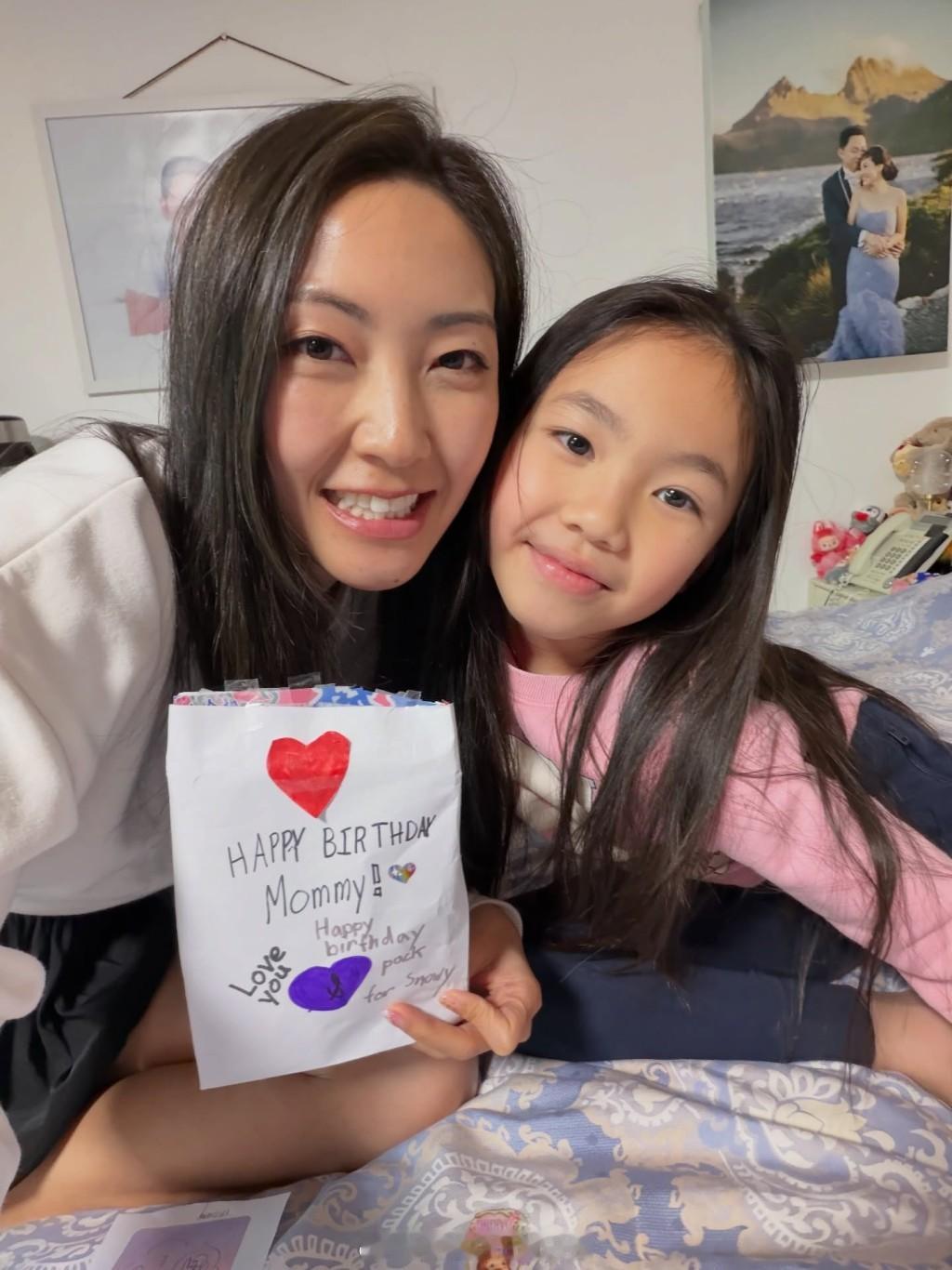 蔡雪莹生日蛋糕吃不停从照片中可见,蔡雪莹与老公朱威霖二人世界吃饭庆生,老公除了准备漂亮生日蛋糕之外,还特别送上鲜花,合照时蔡雪莹面露甜蜜笑容,并向着镜头嘟嘴。此外,她亦获女儿Sheryl送上亲手自制的手写生日卡,与家人一起吃饭庆祝,相当幸福!甚有人缘的蔡雪莹,还出席了不同的生日饭局,除了吃了不少生日蛋糕外,还收了不少花束。蔡雪莹亦在IG以英文写道:“感谢我亲爱的家人和朋友们为我准备的所有生日大餐。有你们,我感到无比幸福。(即使已经步入中年)”。