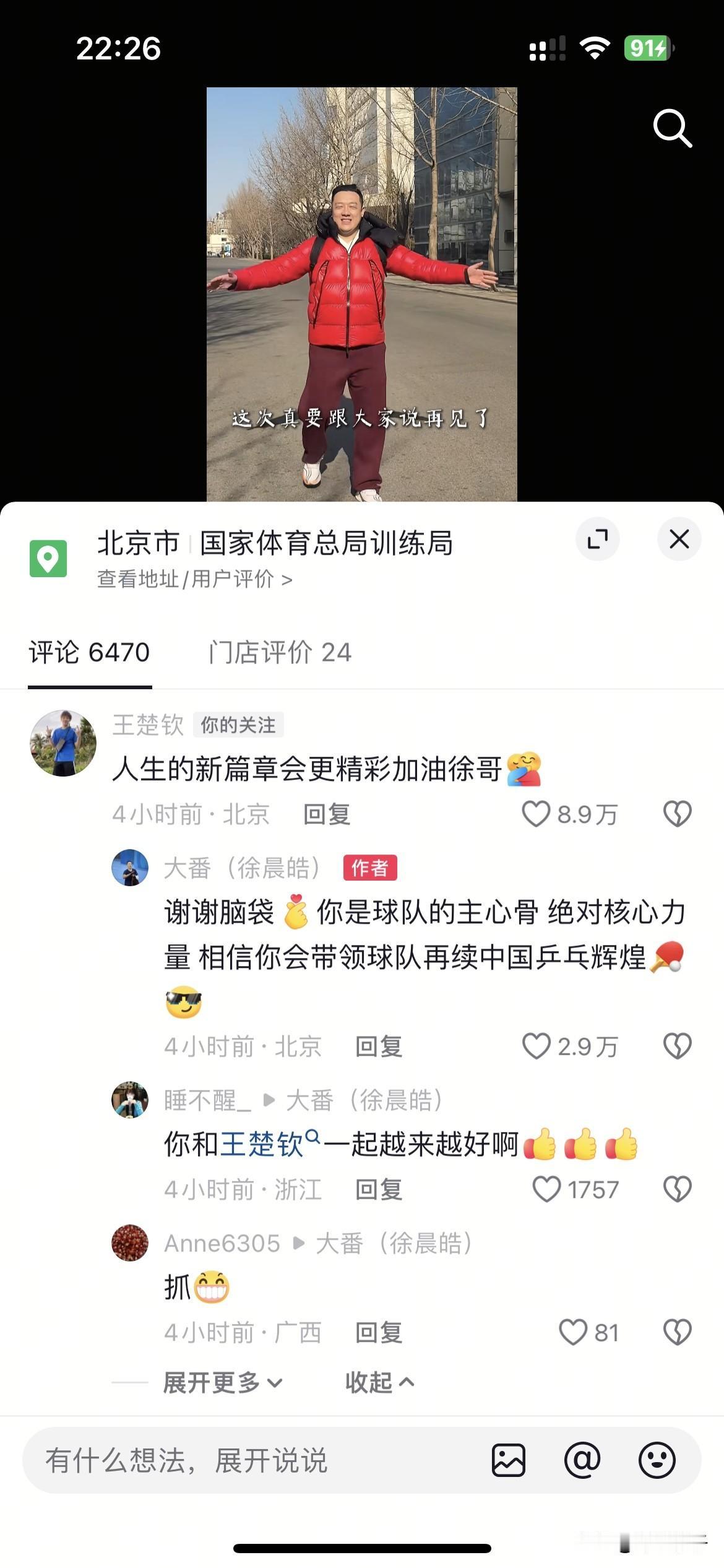 徐晨皓发抖音发表退队感言,评论区比退队感言精彩万倍。 对于徐晨皓的认识大多是考古,知道他和樊振东原来同为八一队,好像原来他挺喜欢小胖。 原来我感觉他那时小,调皮逗小胖玩玩也正常吧,但看小胖明显拒绝他还继续对小胖有些过分的动作,我开始对他失去好感。 特别是樊振东退排后,他跳岀来站台张雷背刺樊振东,我就对他更无感了。 今天他发退队感觉言,退队感言没什么特别的,好看的是评论区。不得不说,No,算了不说。 国乒