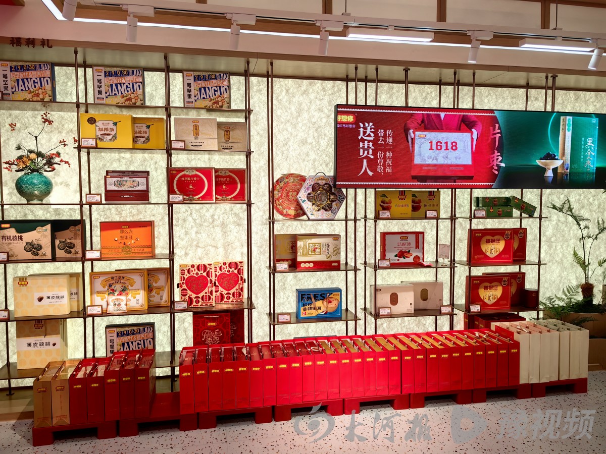剪彩与叠枣山仪式圆满落幕,嘉宾们在讲解员的带领下开启“朱门引贵开门纳福”门店参观环节。门店外,巨型蝴蝶结门头宛如一枚“思念的封条”,将牵挂与祝福打包其中;橱窗边的“我在这里好想你”主题座椅,成为安放思念的温暖角落。跨进象征尊贵与福气的“朱门引贵”墙,一楼的伴手礼区、文创区、滋补区、喜礼区、鲜制区错落分布,百元内高性价比伴手礼、“丝牵好运”文创产品、零添加鲜制枣糕与养生浓浆、红火喜庆的喜礼礼盒,满足不同消费场景需求。特别是“红枣72变”产品陈列,从原枣到黑金枣的全品类展示,直观呈现了好想你在红枣深加工领域的匠心坚守与创新突破。