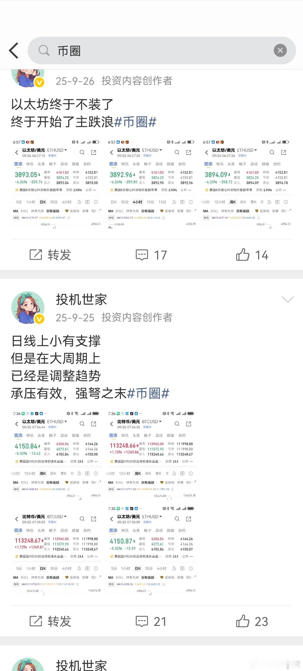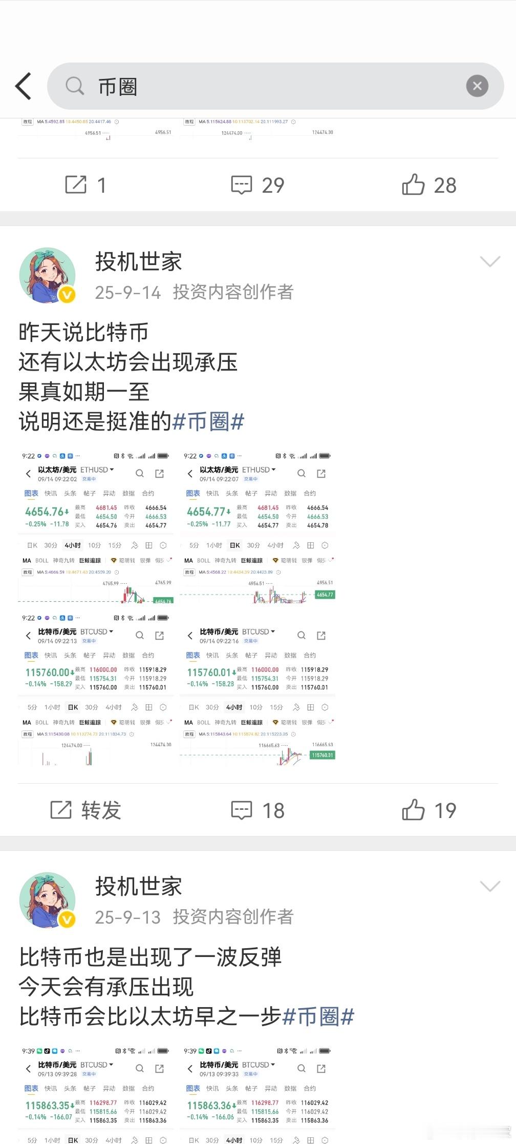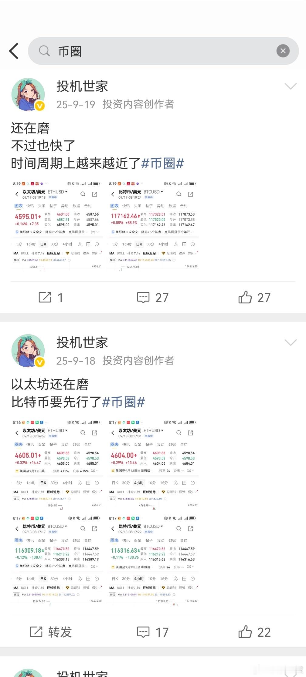 从8月底开始看空比特币和以太坊有心人去看看周期吧币圈货币